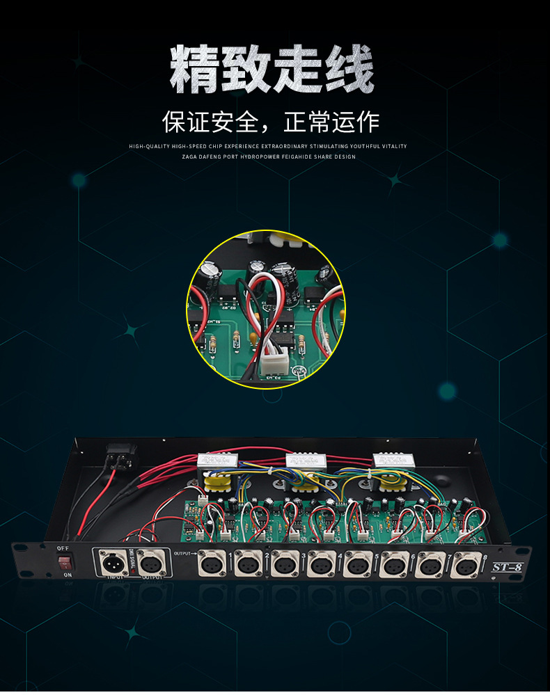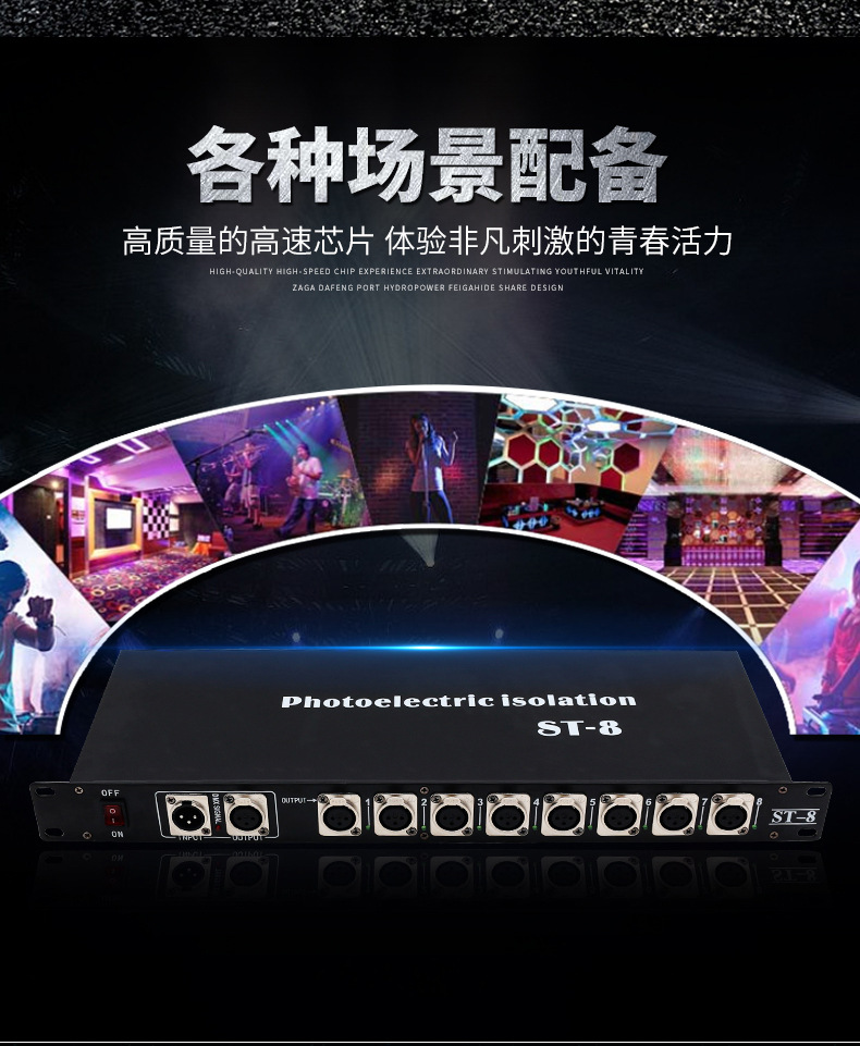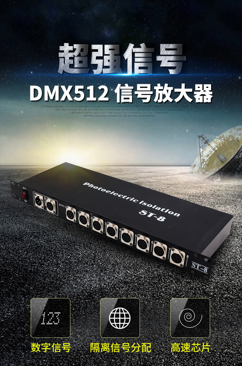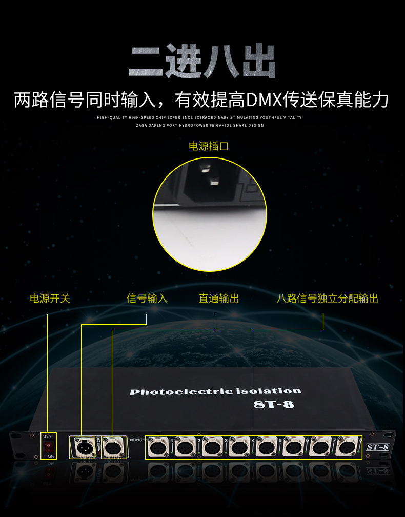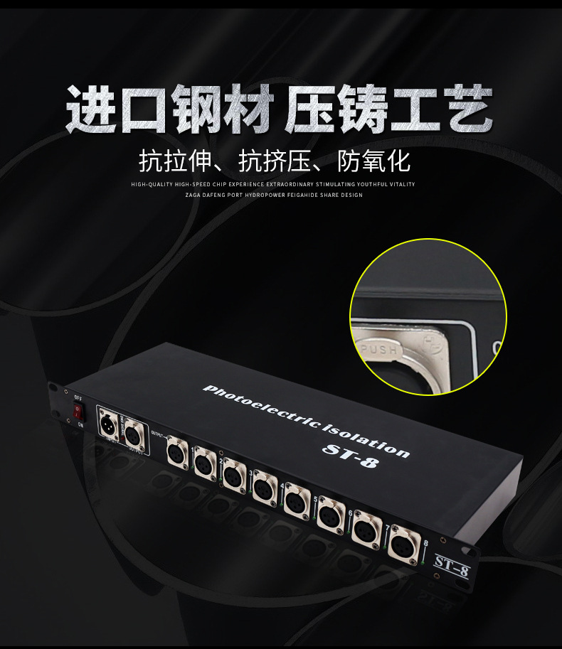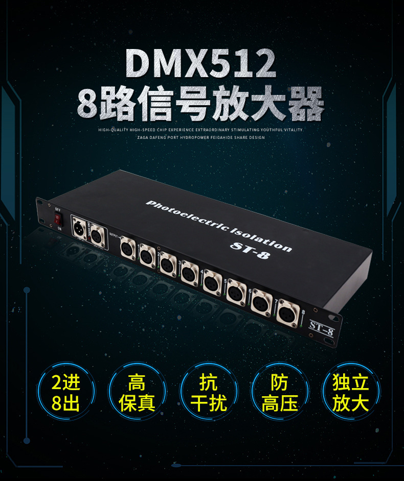 Jiechuang 무대 조명 4 방향 8 방향 광전 절연 신호 dmx512 분배 증폭기 빔 램프 트랜시버