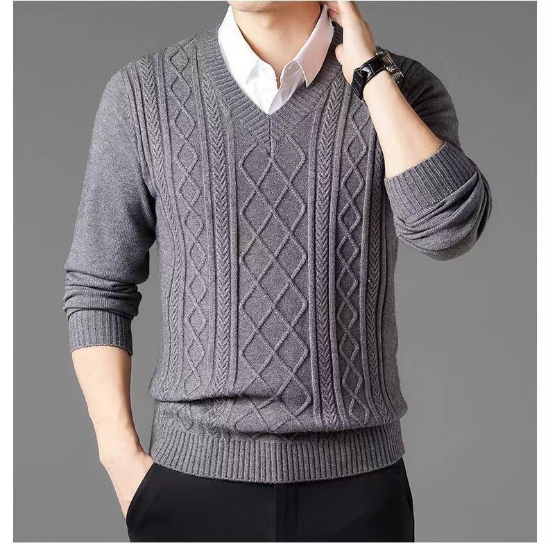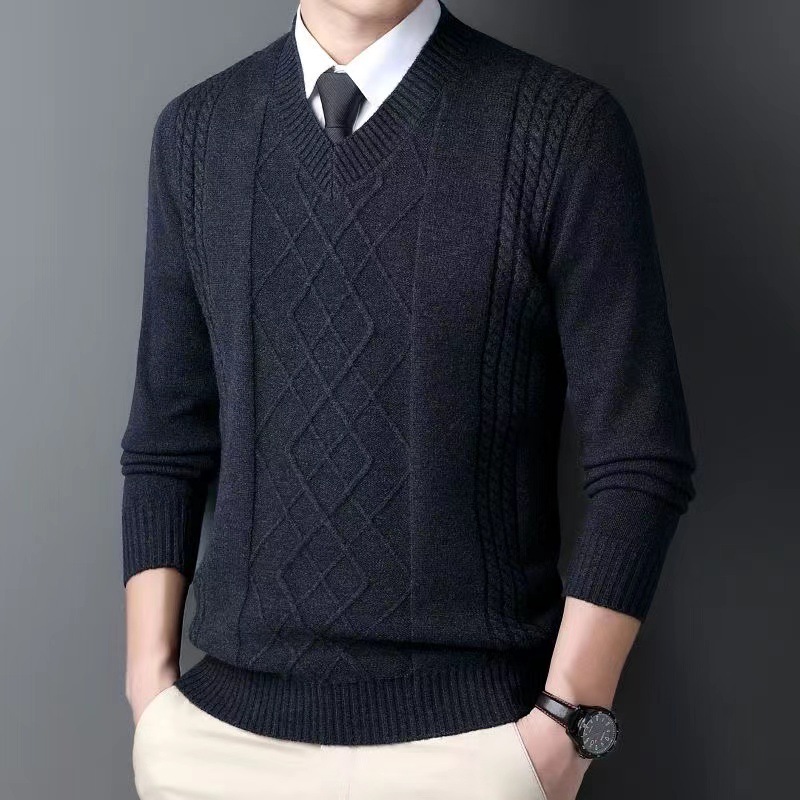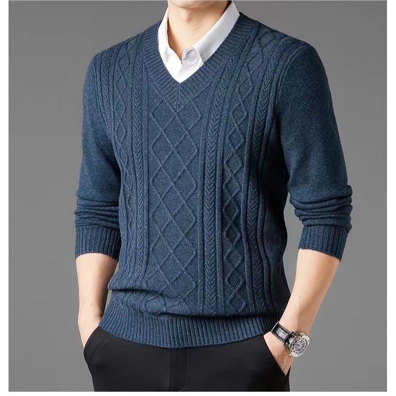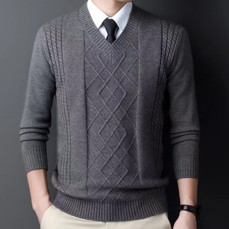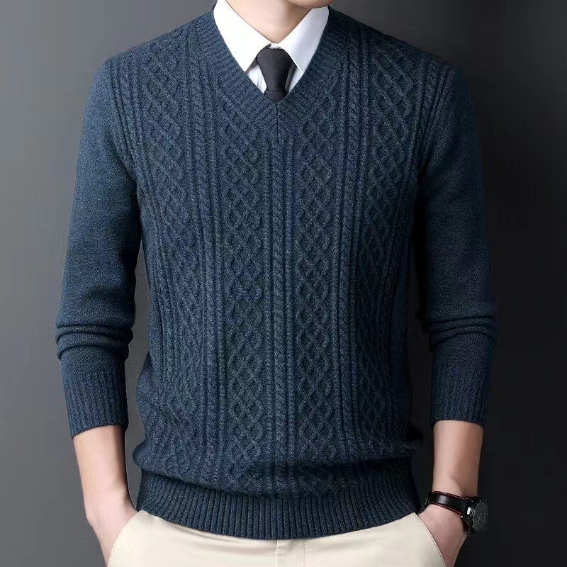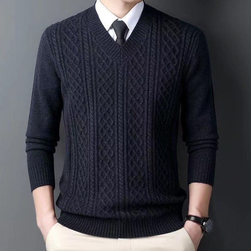 두꺼운 가을 겨울 남성용 울 스웨터, 두꺼운 라인 브이넥 지퍼 풀오버 스웨터, 캐주얼 대형 바닥 니트 스웨터스토어 가기