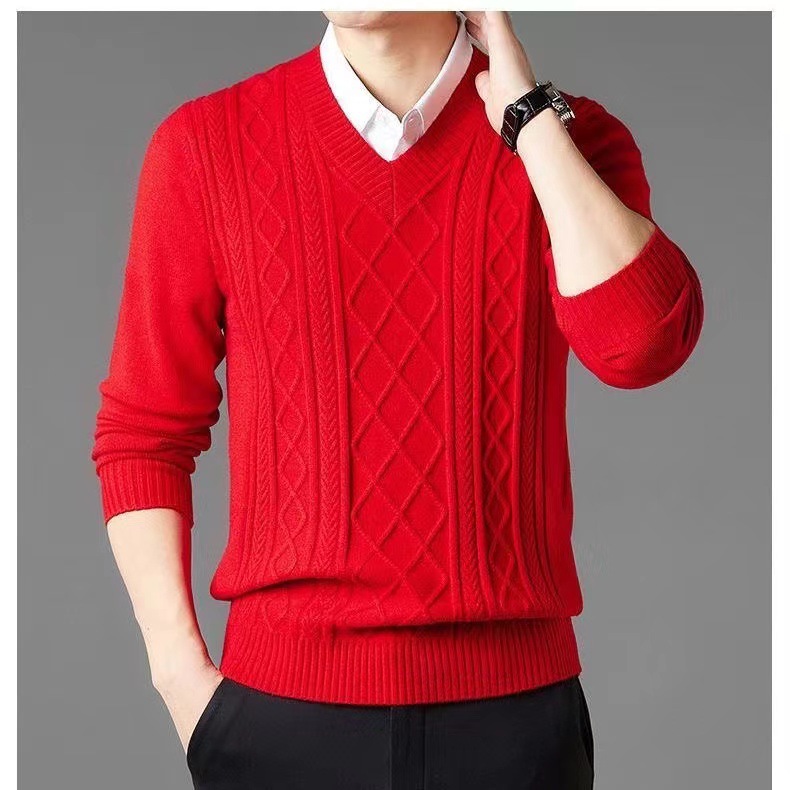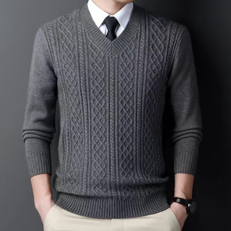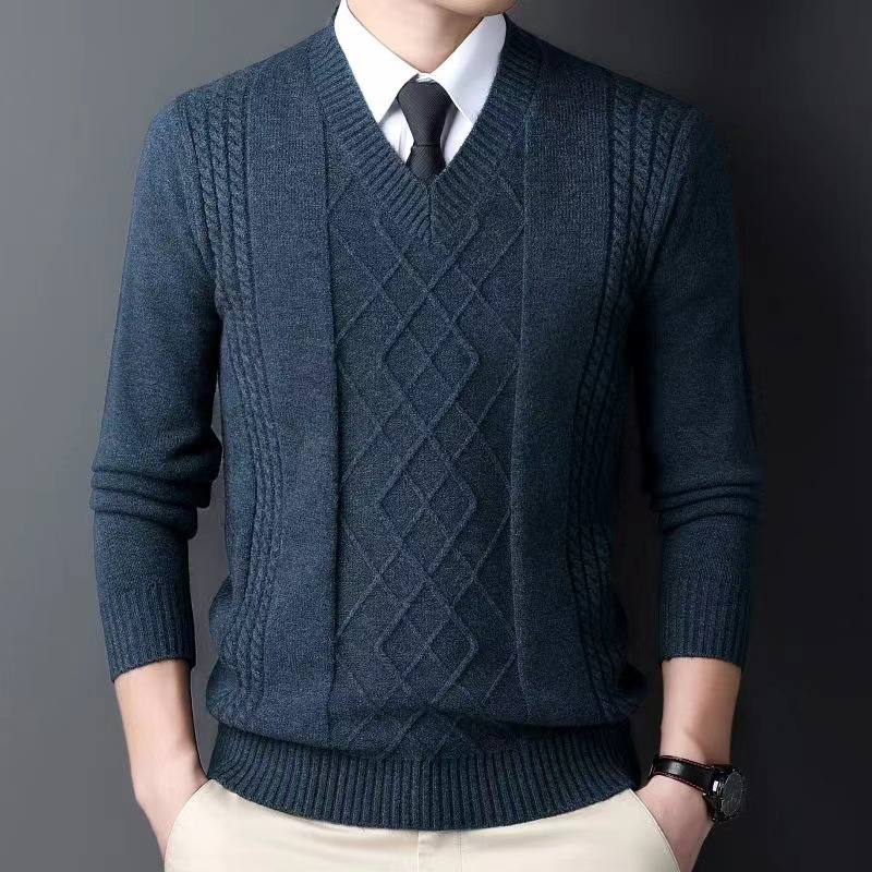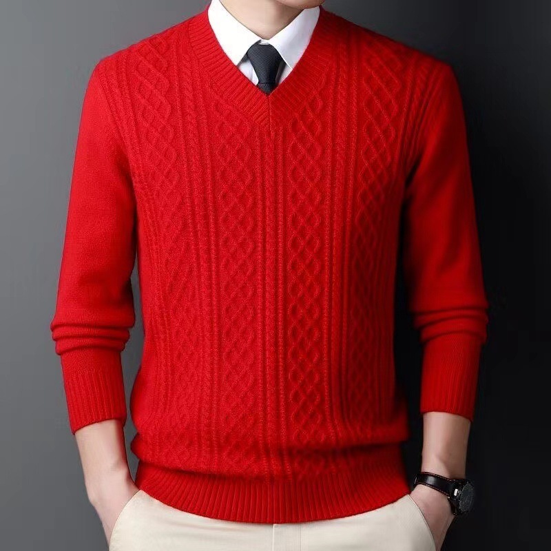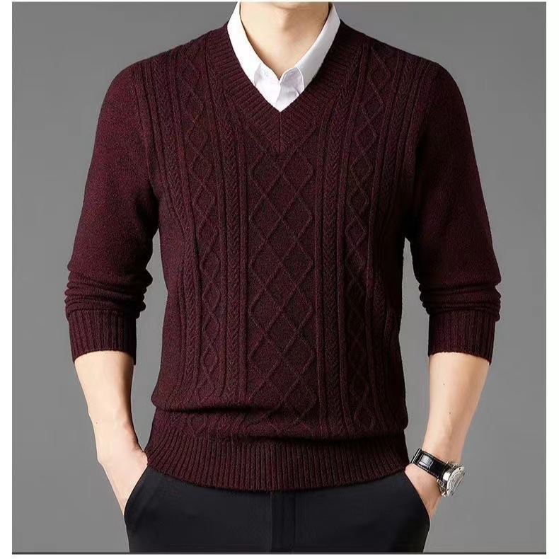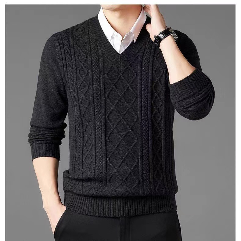 두꺼운 가을 겨울 남성용 울 스웨터, 두꺼운 라인 브이넥 지퍼 풀오버 스웨터, 캐주얼 대형 바닥 니트 스웨터스토어 가기