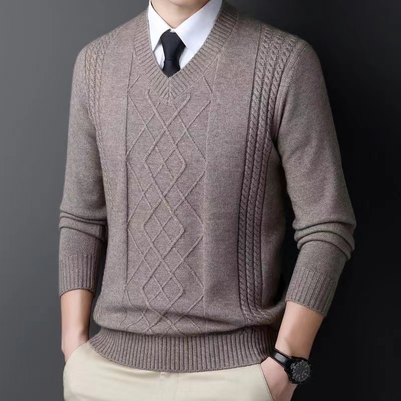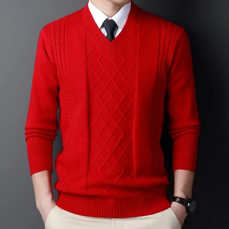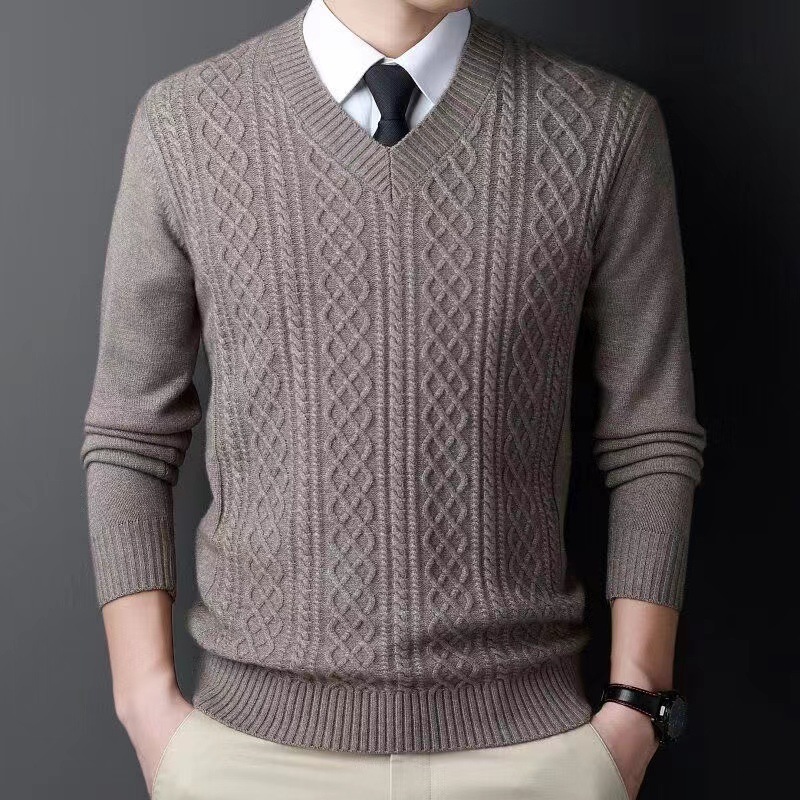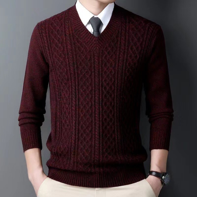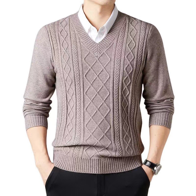 두꺼운 가을 겨울 남성용 울 스웨터, 두꺼운 라인 브이넥 지퍼 풀오버 스웨터, 캐주얼 대형 바닥 니트 스웨터
