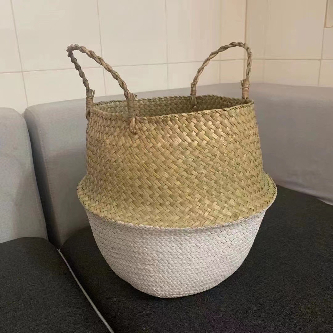 큰 배 바구니 밀짚 짠 꽃 냄비 빈티지 해초 짠 꽃 바구니 파라다이스 새 피아노 잎 Ficus 거북이 다시 이케아 접이식 보관 바구니스토어 가기