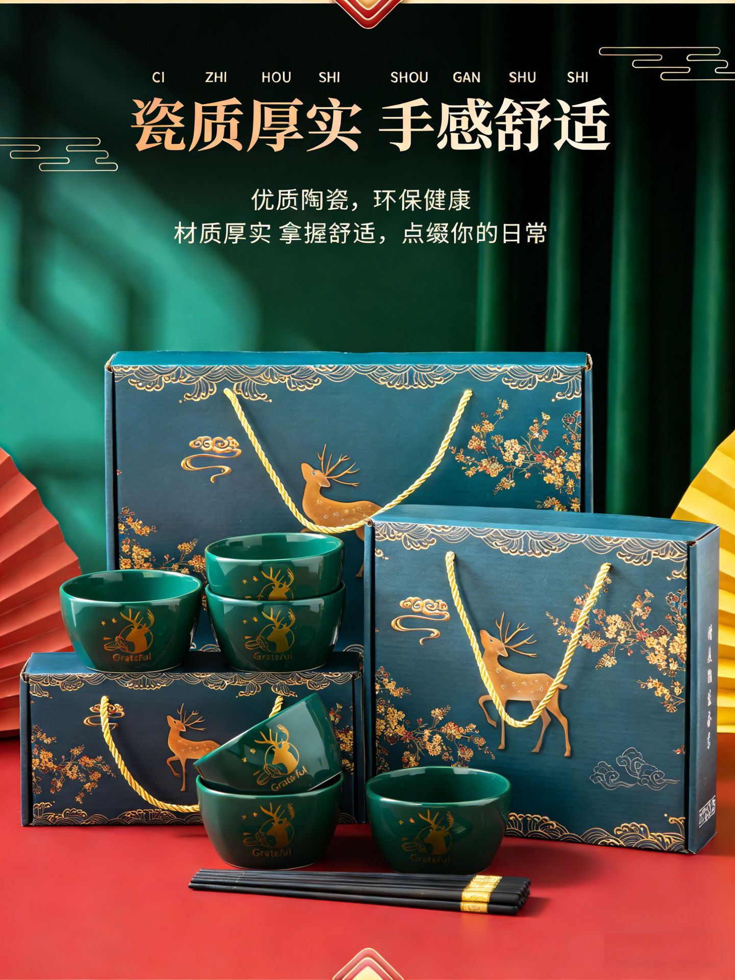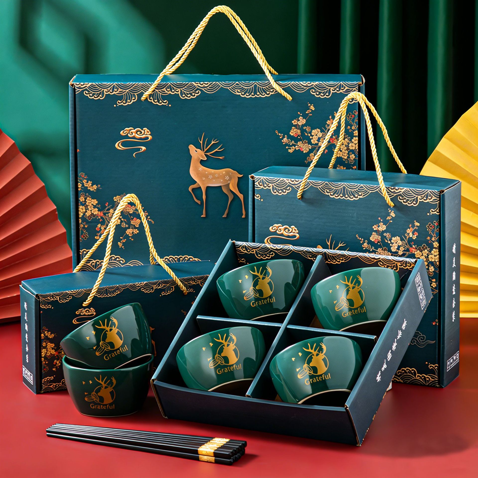 창조적 인 작은 선물 밥 그릇 세라믹 그릇 젓가락 접시 세트 선물 그릇 식기 위대한 행운 선물 동반 선물스토어 가기