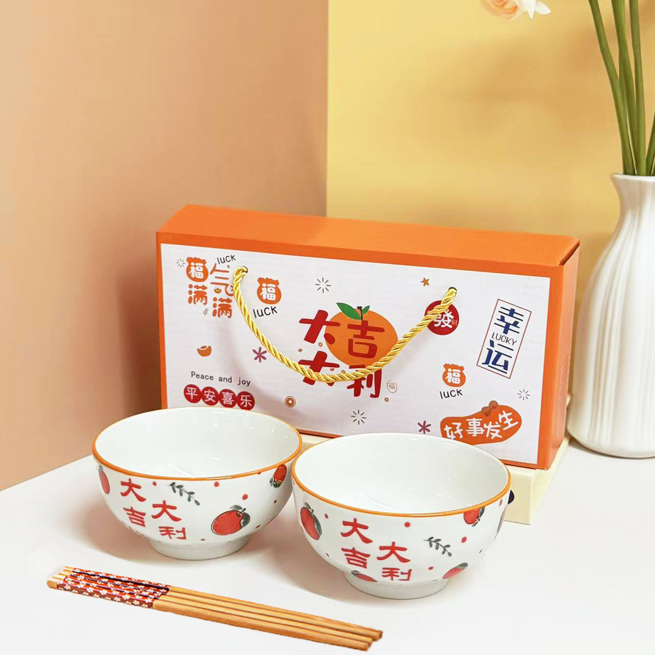 창조적 인 작은 선물 밥 그릇 세라믹 그릇 젓가락 접시 세트 선물 그릇 식기 위대한 행운 선물 동반 선물