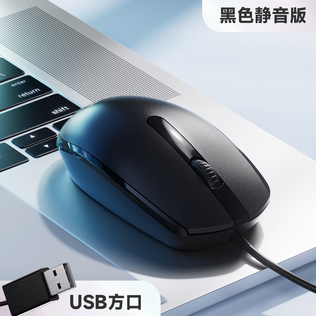 마우스 유선 USB 음소거 홈 오피스 데스크탑 노트북 비즈니스 남성과 여성의 둥근 구멍 1.8 미터 라인스토어 가기