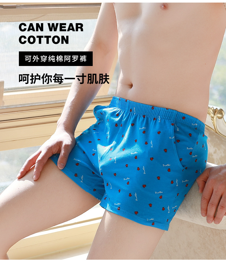 宽松内裤男士纯棉透气阿罗裤男生高档舒适休闲睡裤大码运动四角裤