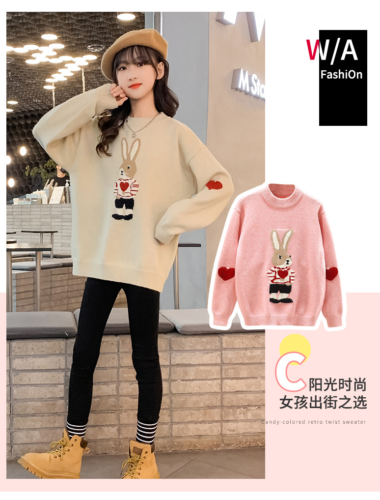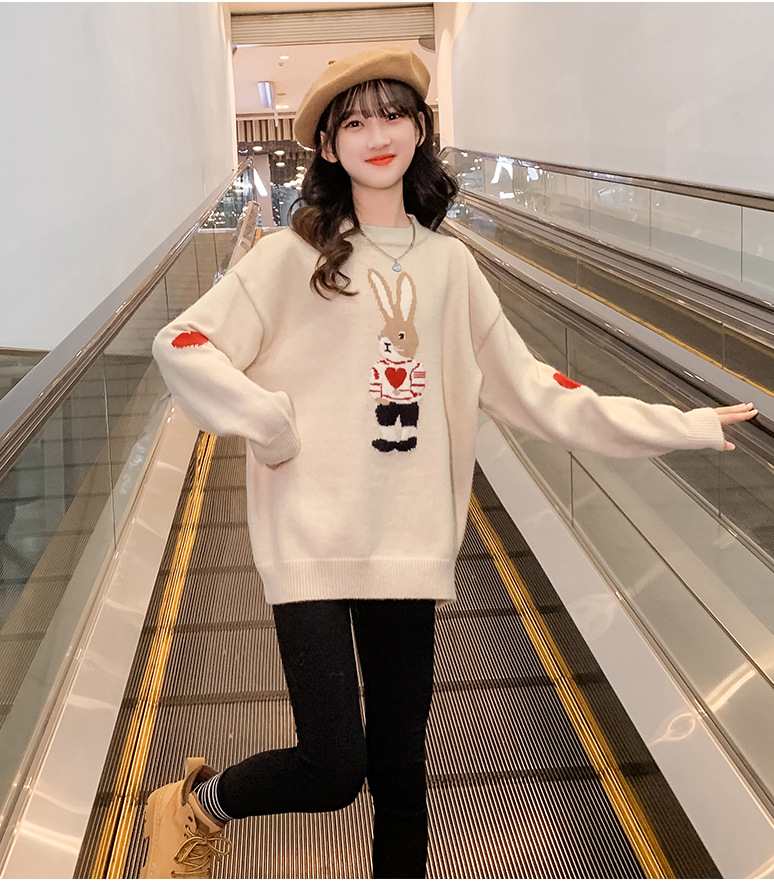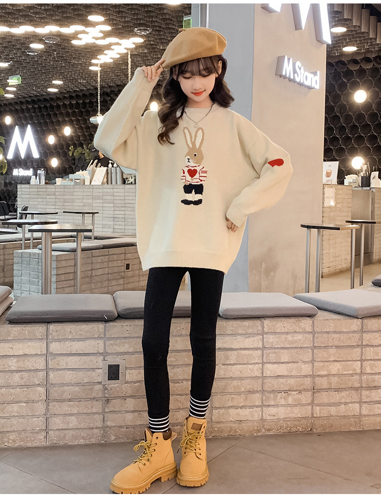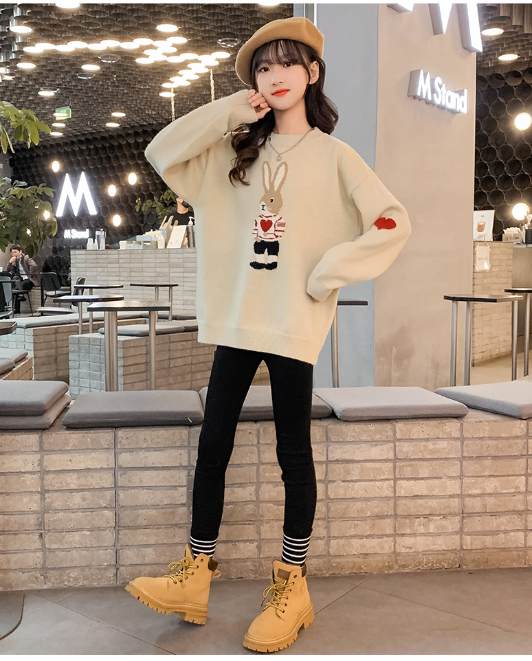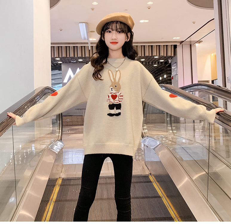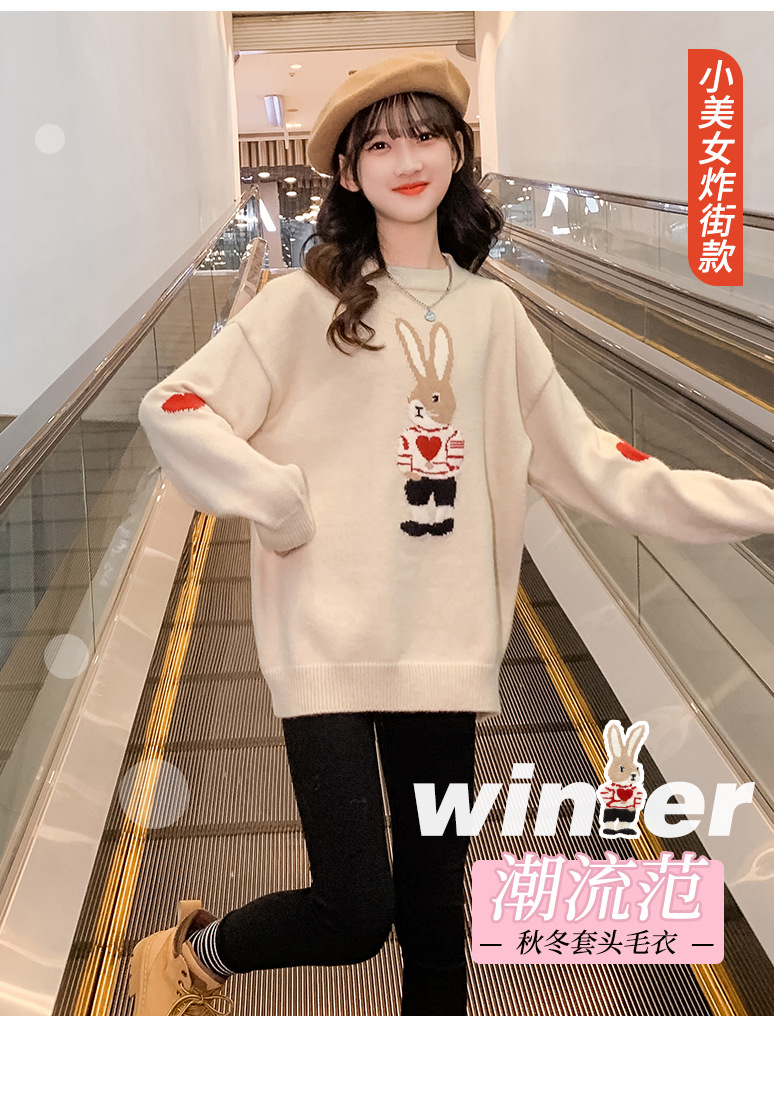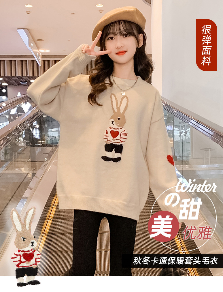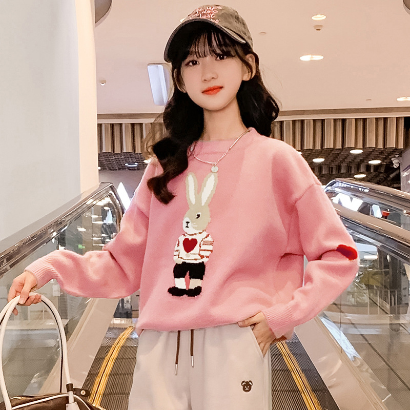 여자 겨울 새로운 스웨터 토끼 만화 풀오버 베이스 셔츠 겉옷 초등학교 어린이 유치원 니트 스웨터스토어 가기