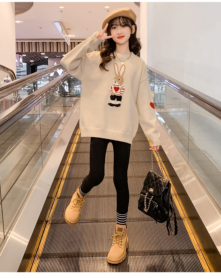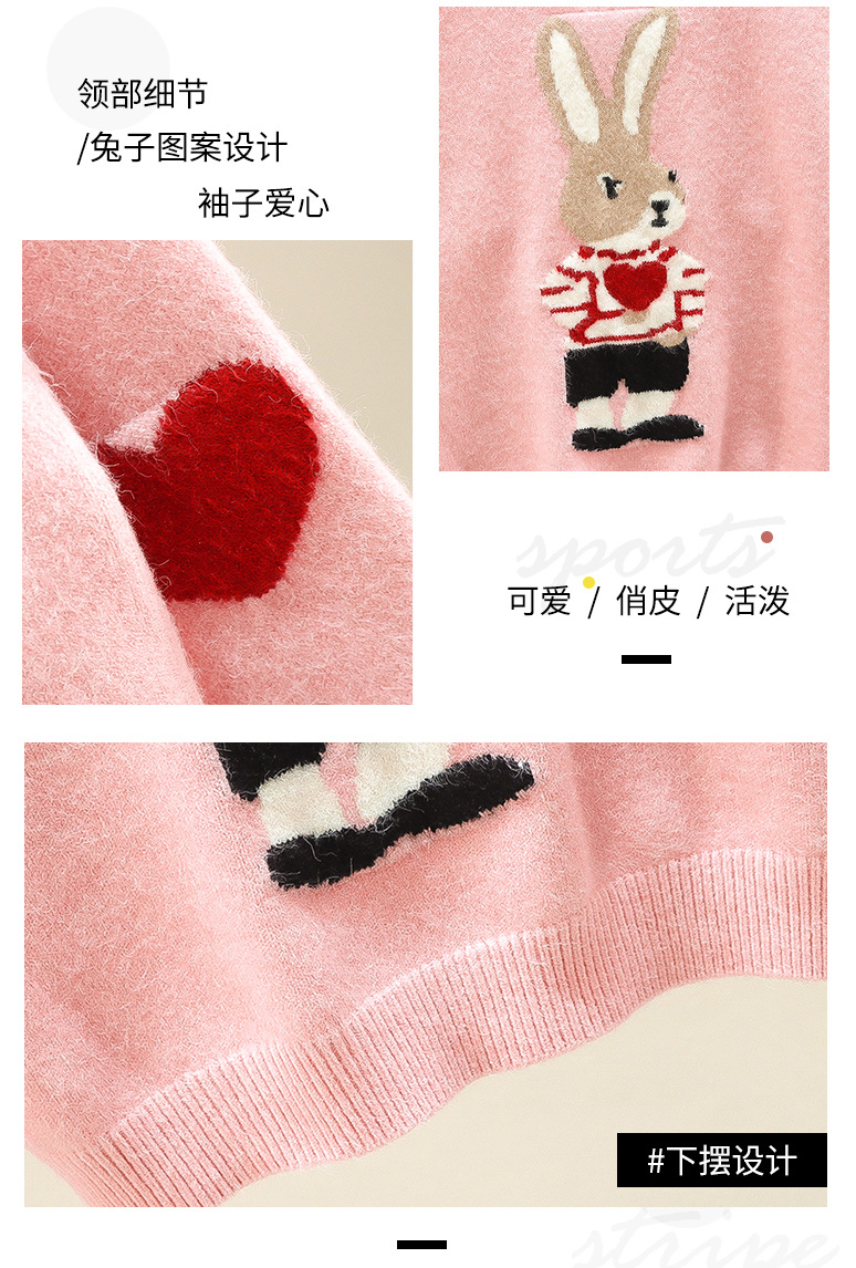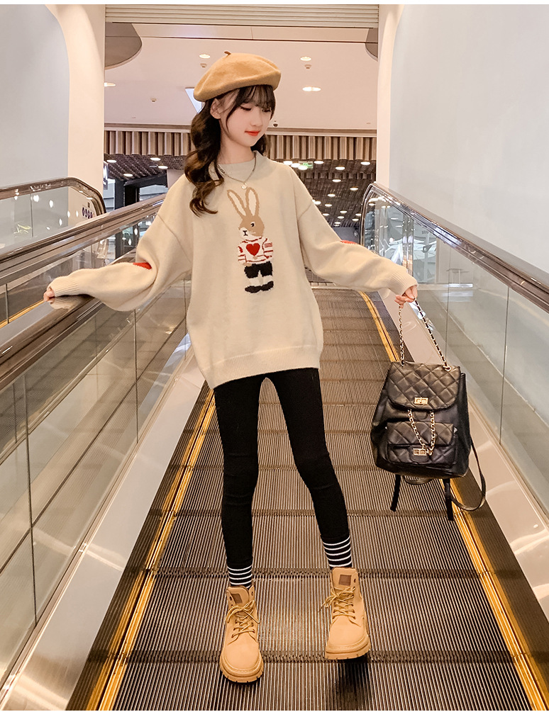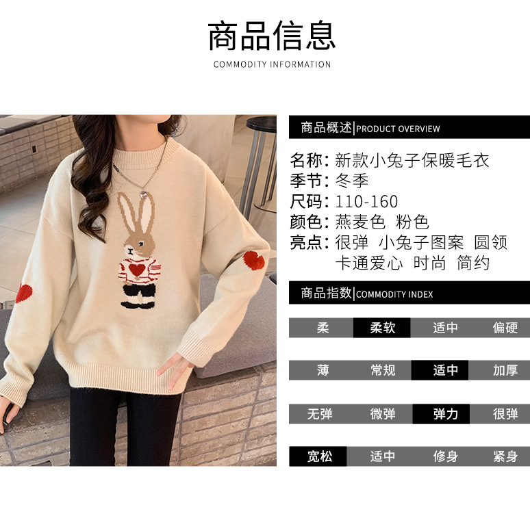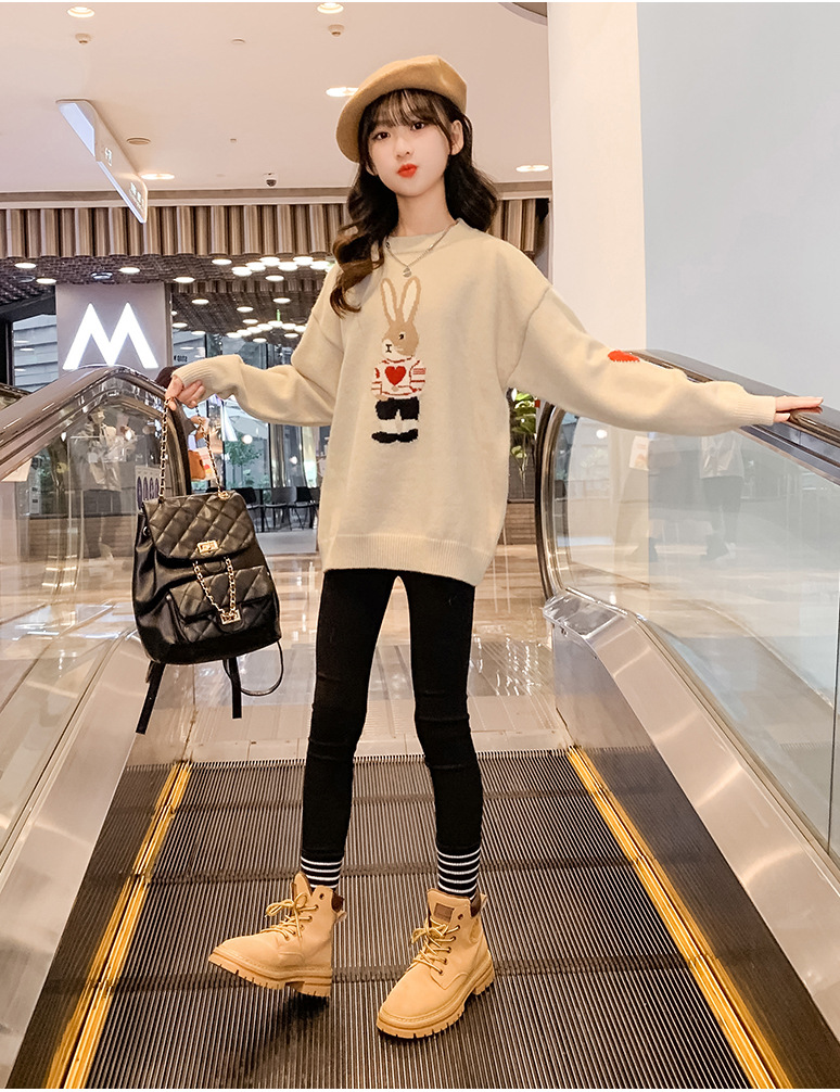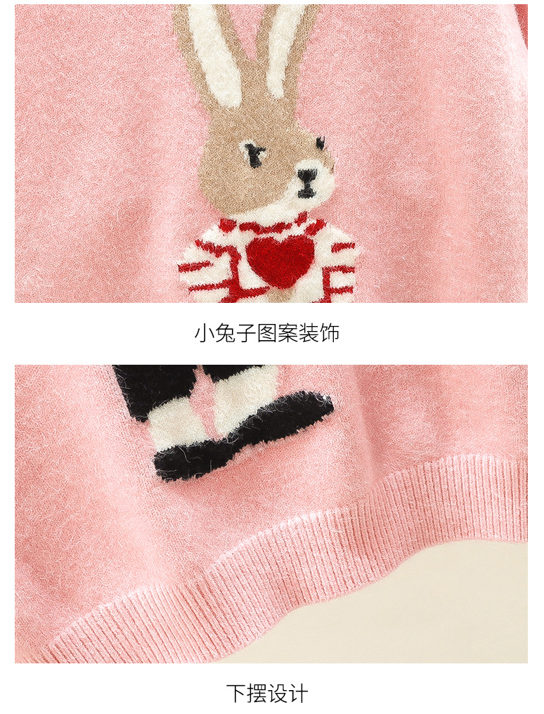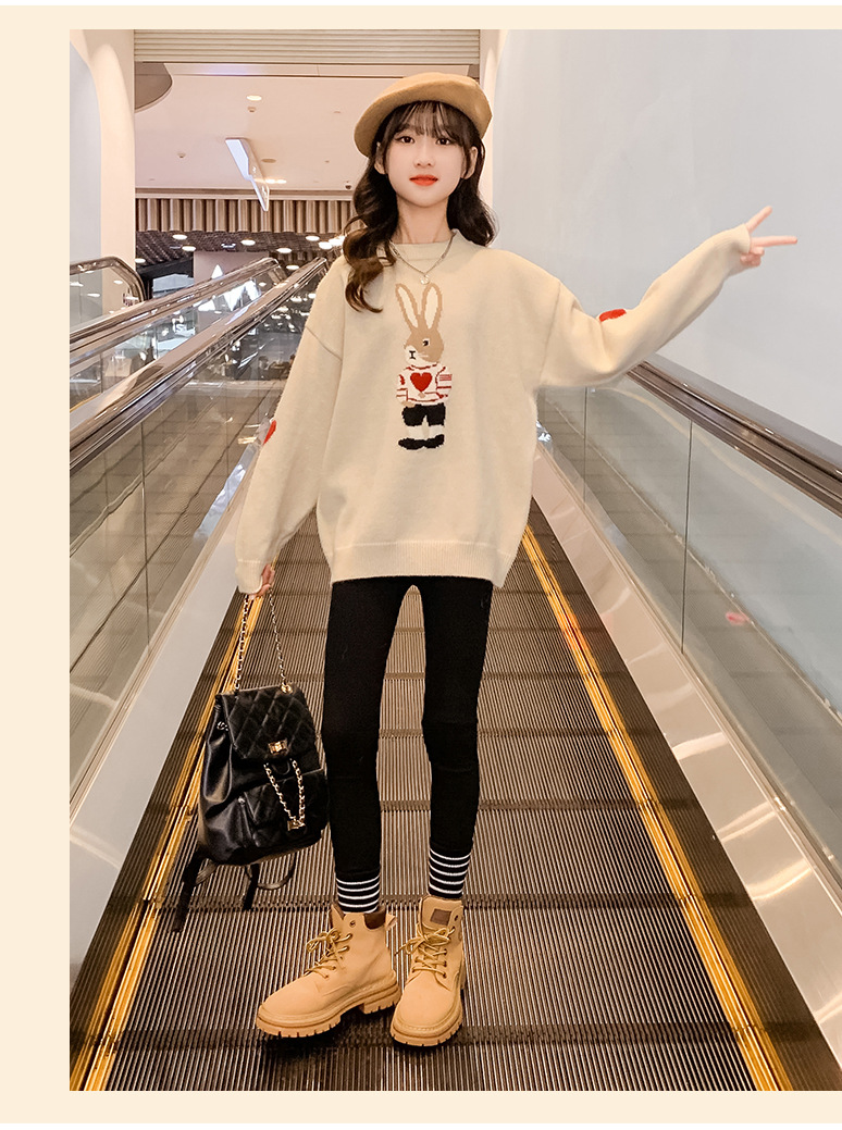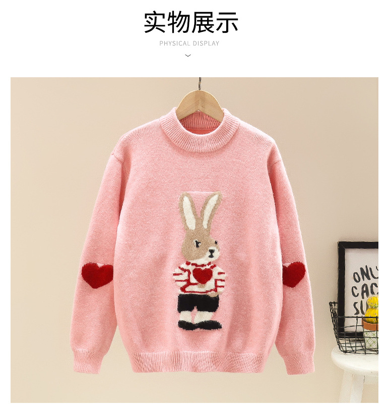 여자 겨울 새로운 스웨터 토끼 만화 풀오버 베이스 셔츠 겉옷 초등학교 어린이 유치원 니트 스웨터스토어 가기