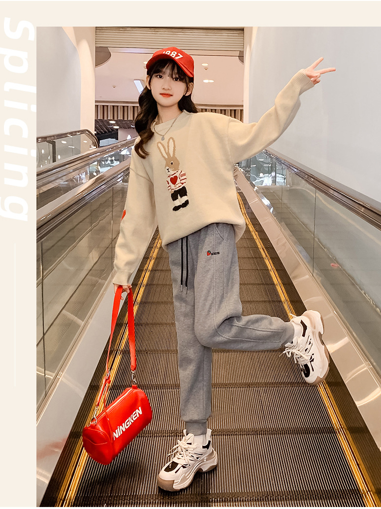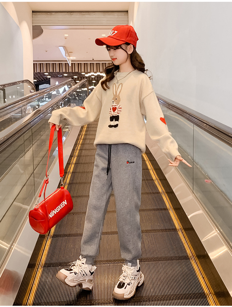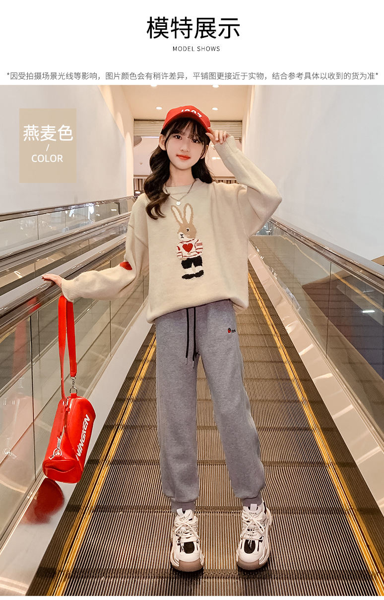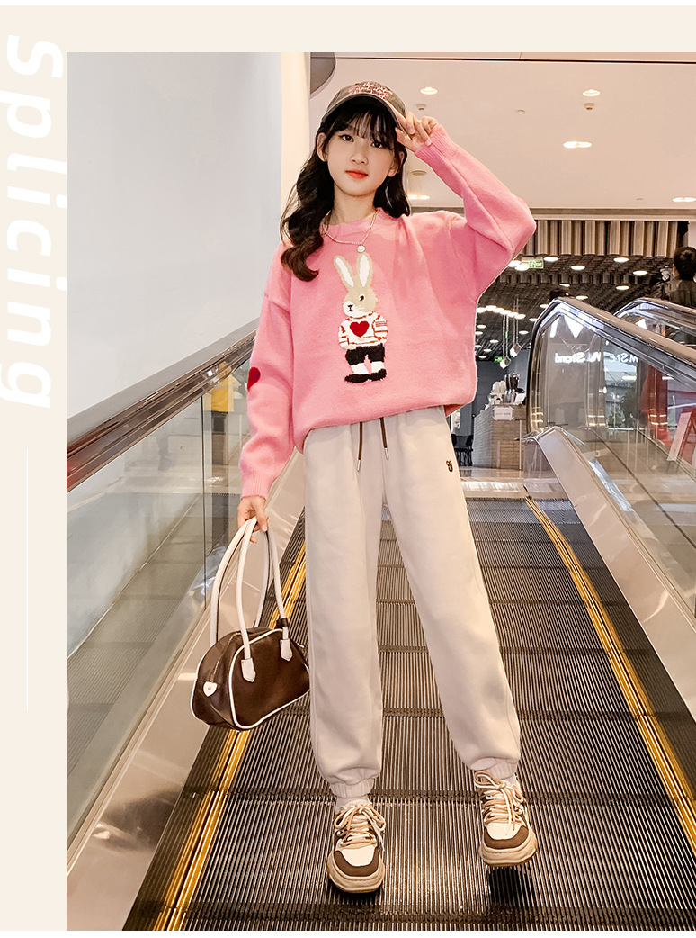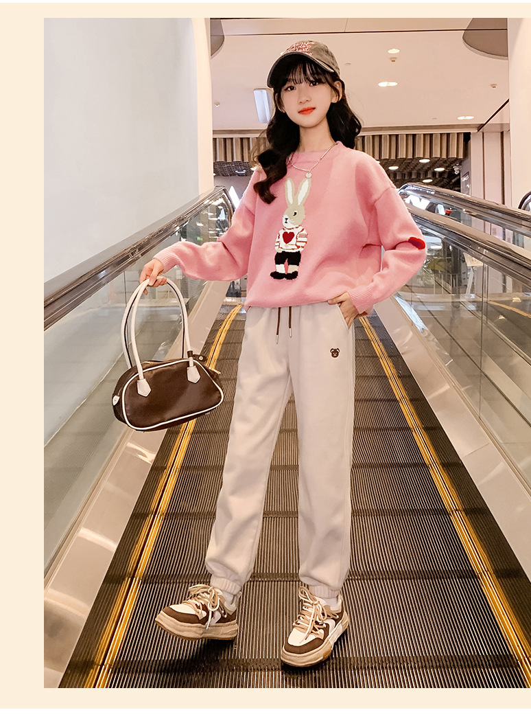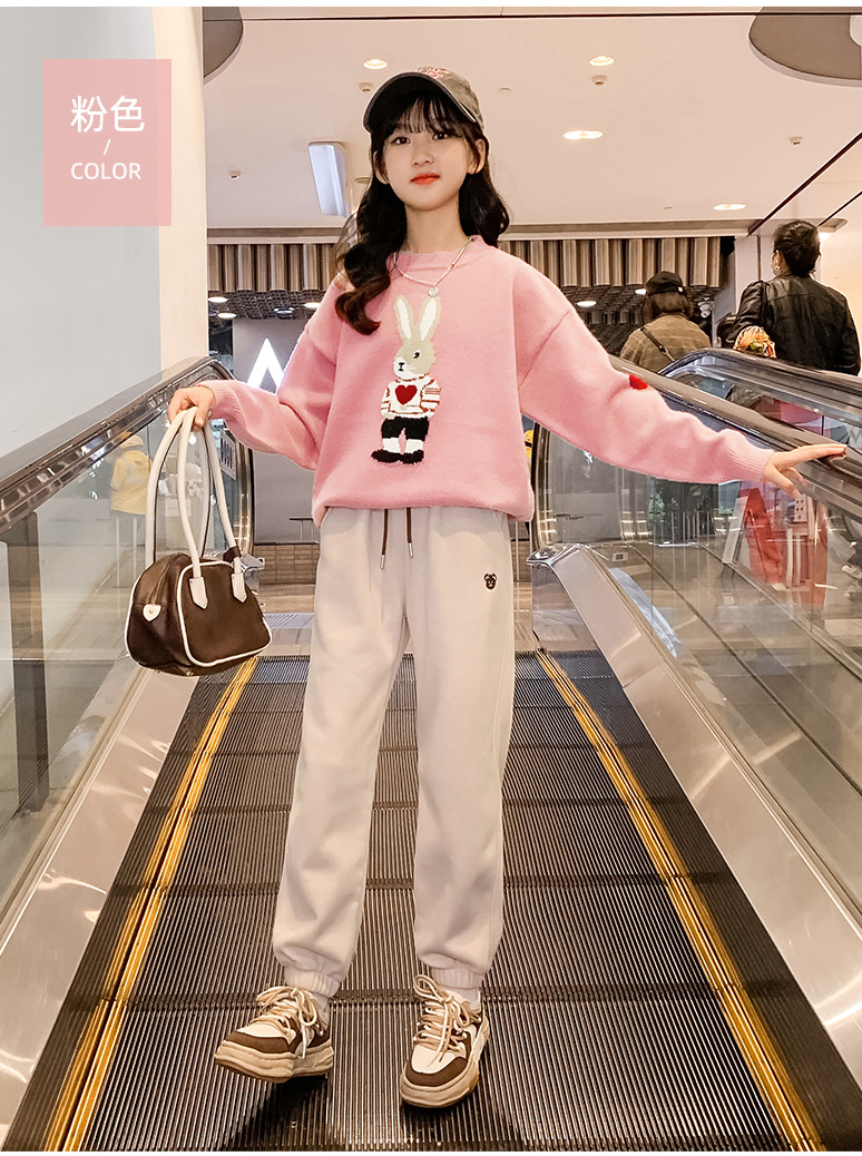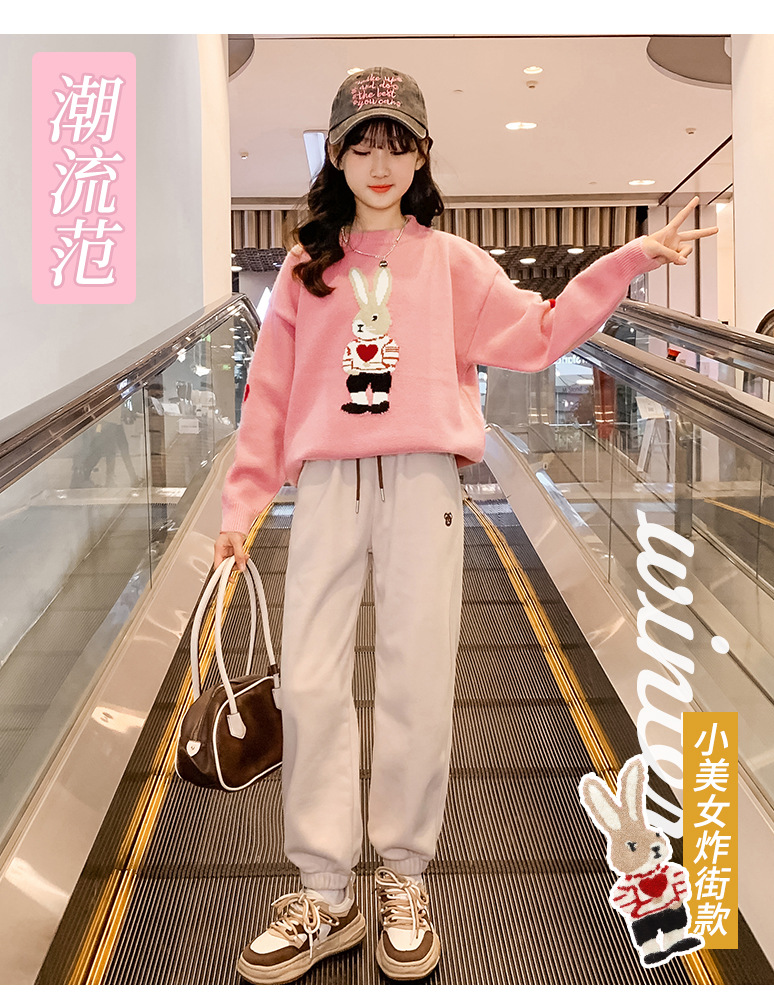 여자 겨울 새로운 스웨터 토끼 만화 풀오버 베이스 셔츠 겉옷 초등학교 어린이 유치원 니트 스웨터스토어 가기
