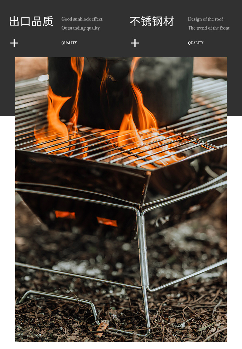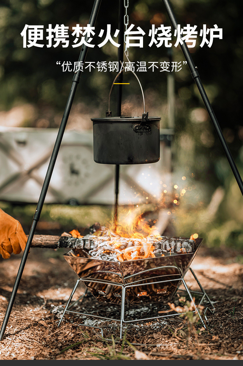 야외 접이식 불타는 스토브 캠핑 난방 스토브 모닥불 스토브 휴대용 두꺼운 스테인레스 스틸 바베큐 장작 난로