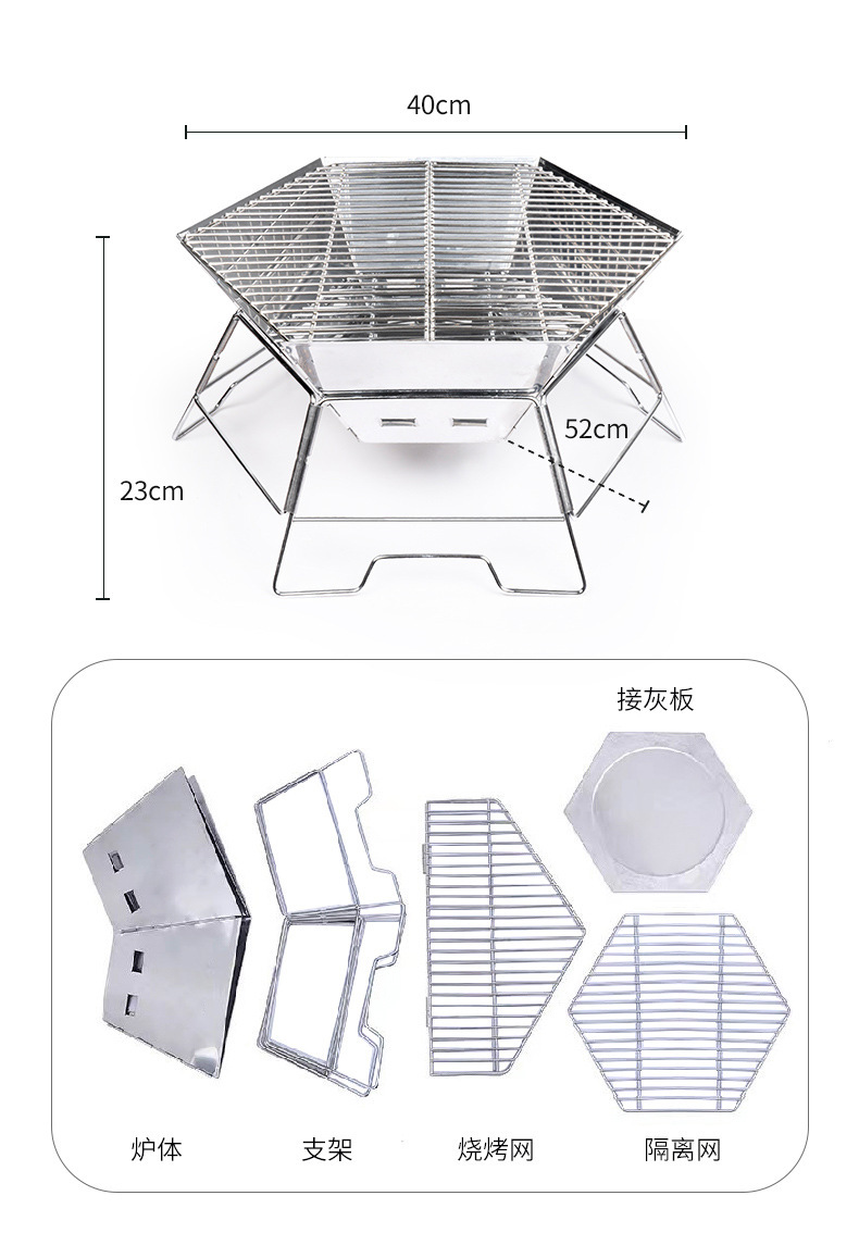 • 육각 바비큐/버닝 스토브 [스테인리스 스틸]-배달과 보관 가방
