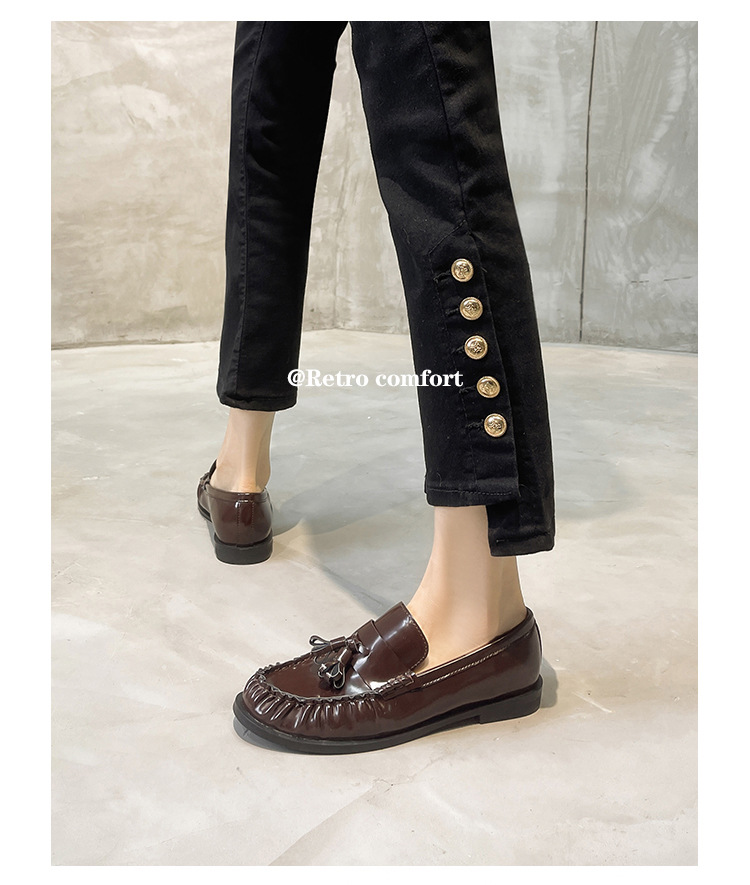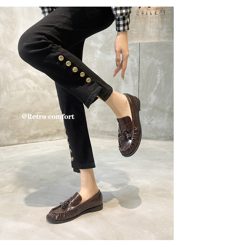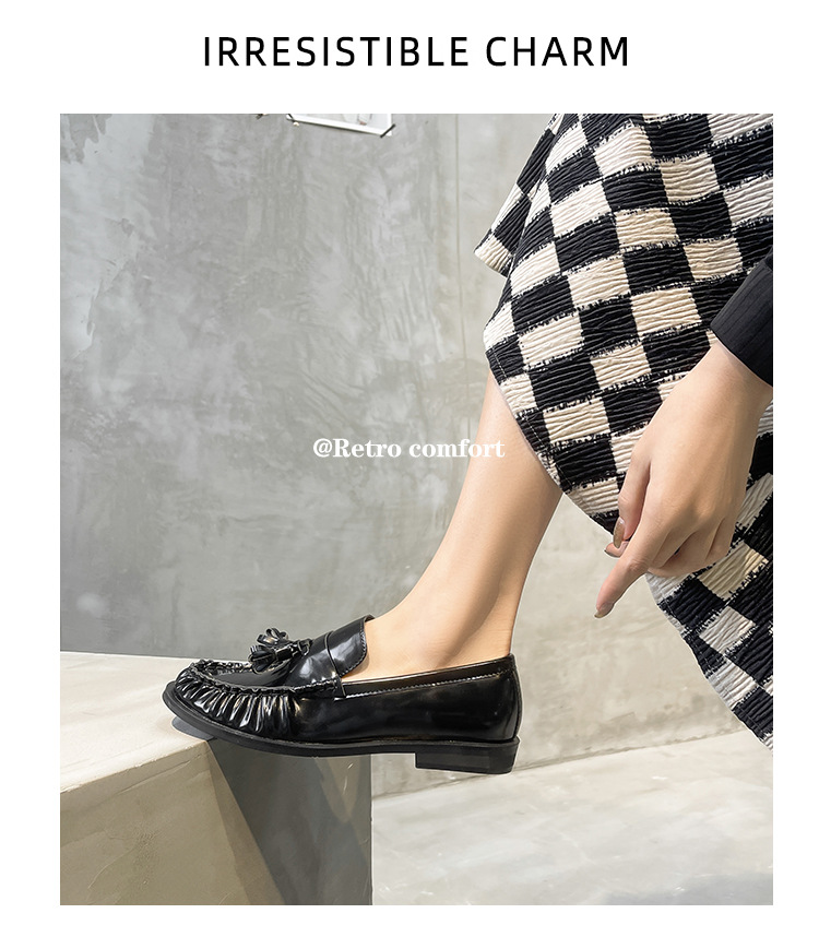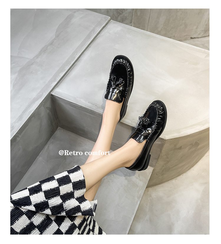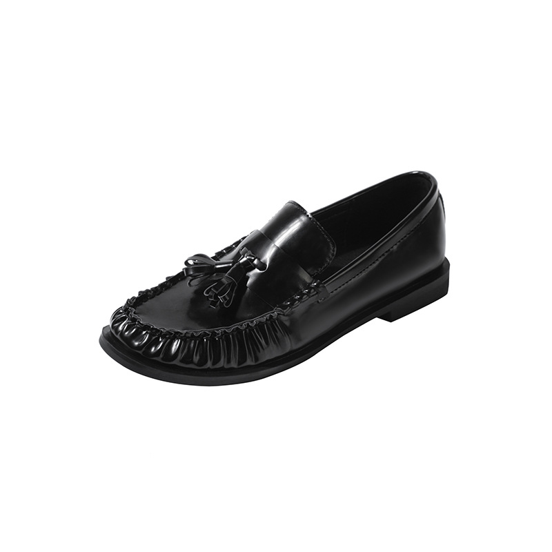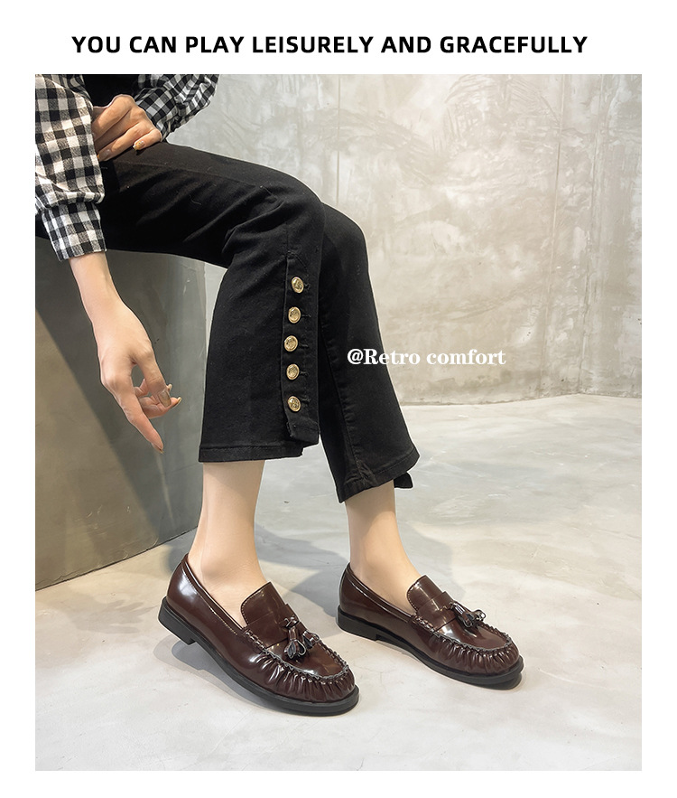 여성용 로퍼 영국 스타일 2025년 신상품 페이턴트 가죽 프린지 브레이드 라운드 토 슬립온 천연 가죽 작은 가죽 신발스토어 가기