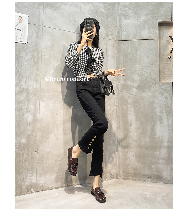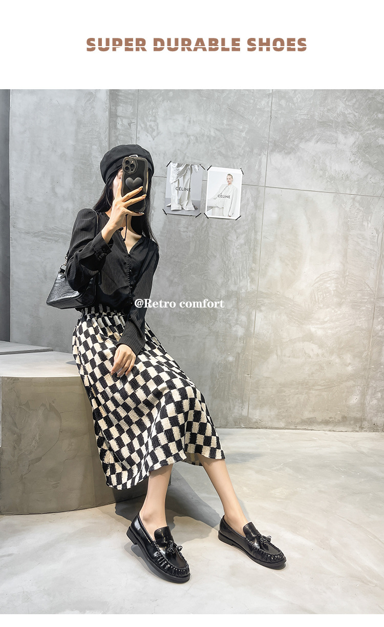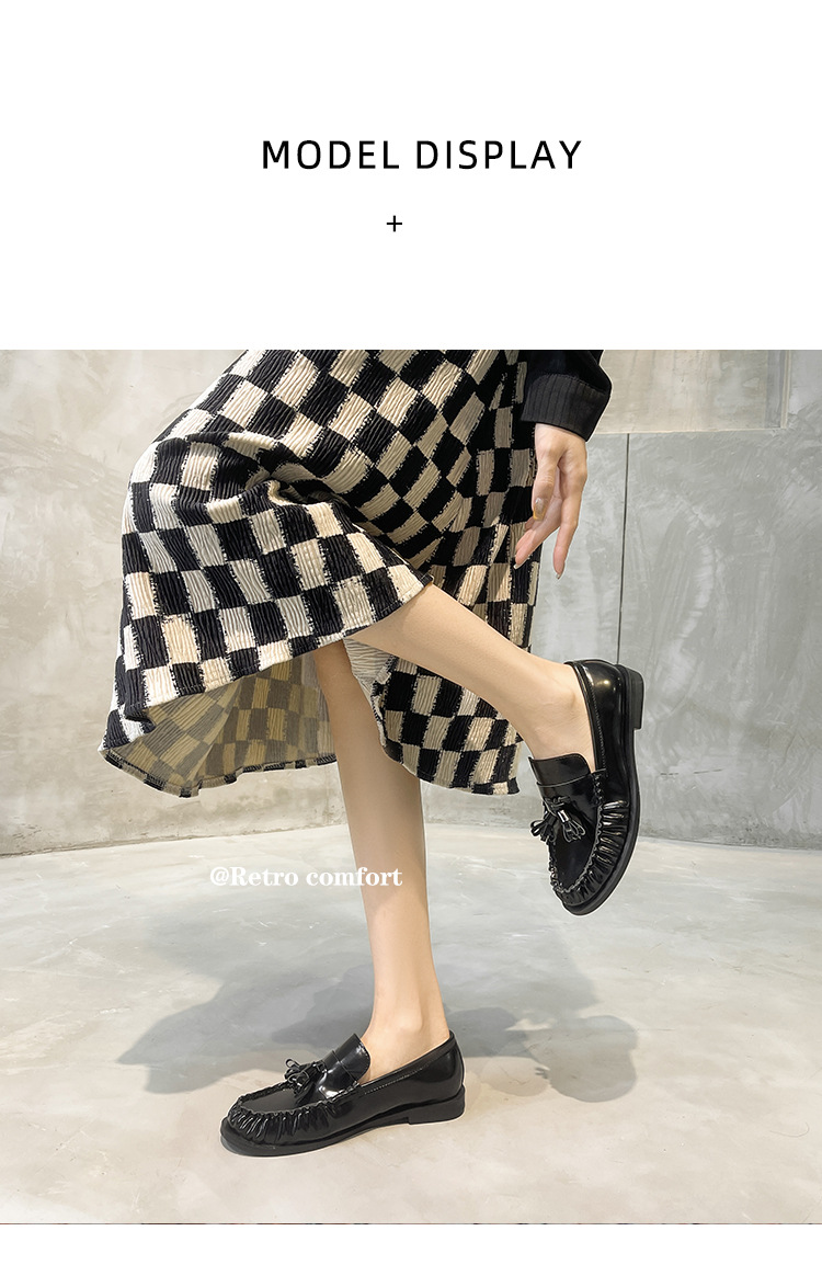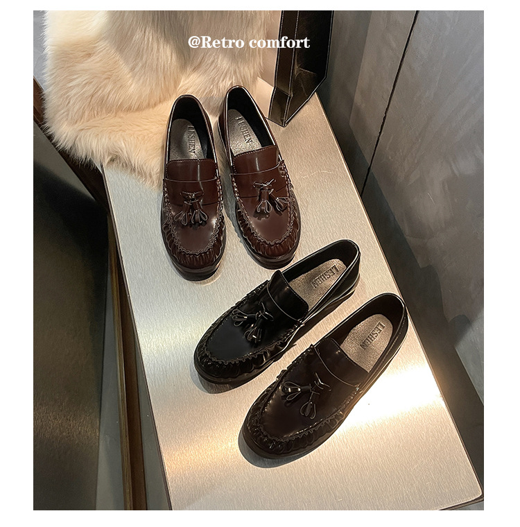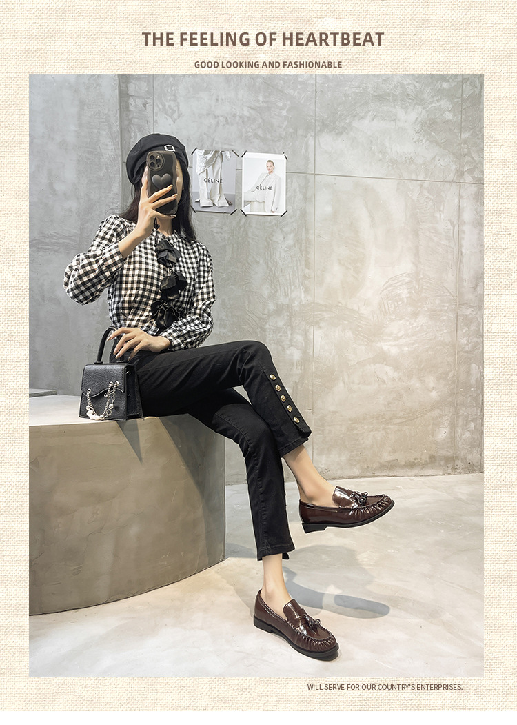 여성용 로퍼 영국 스타일 2025년 신상품 페이턴트 가죽 프린지 브레이드 라운드 토 슬립온 천연 가죽 작은 가죽 신발스토어 가기