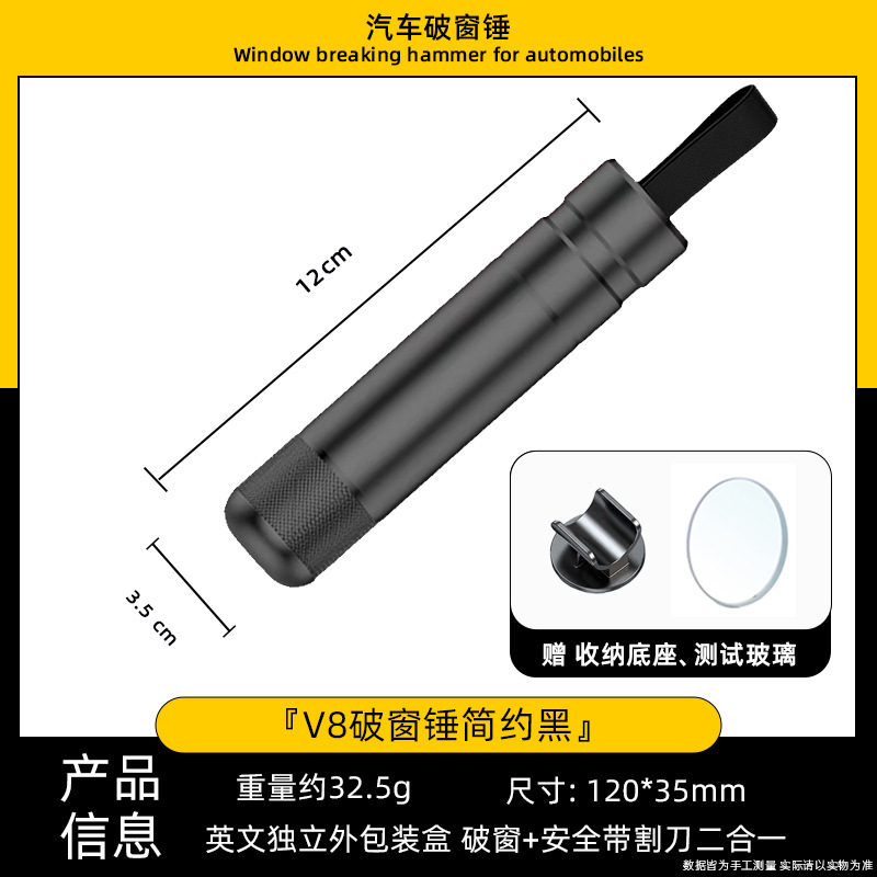 • V8 심플 블랙 [두 번째 깨진 창 내장 시트 벨트 커터]]