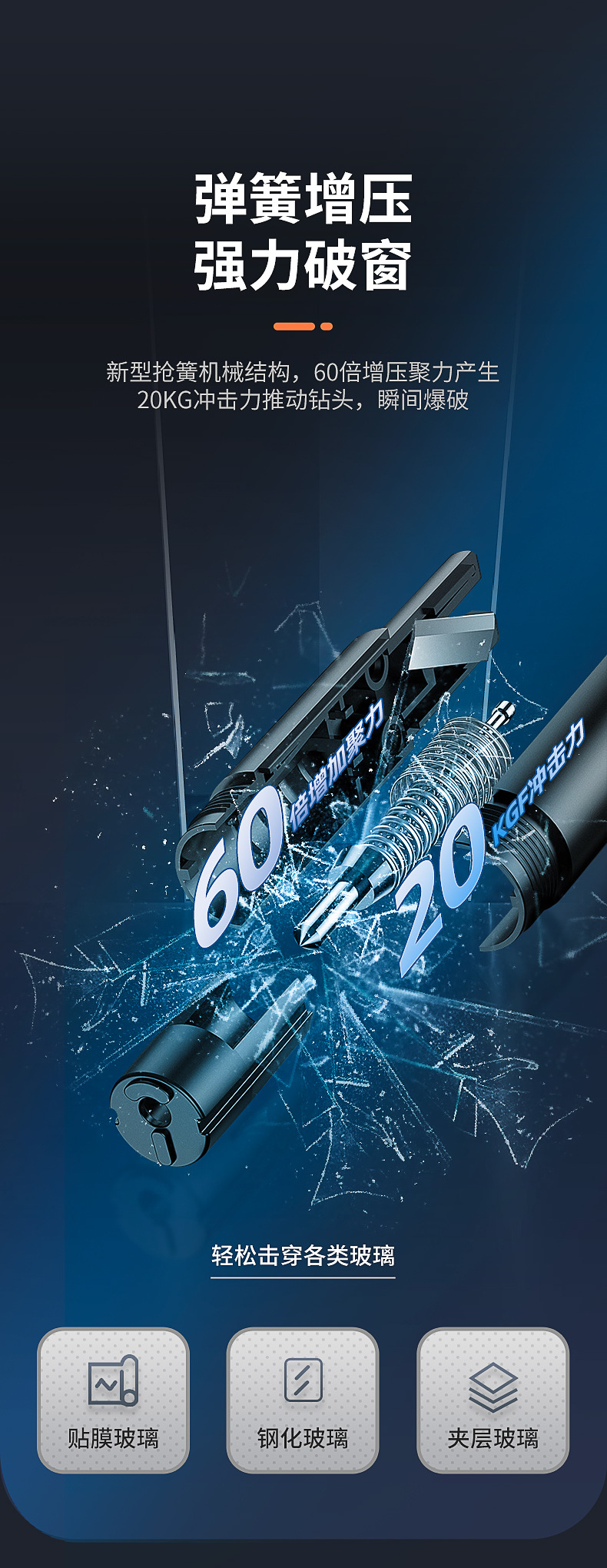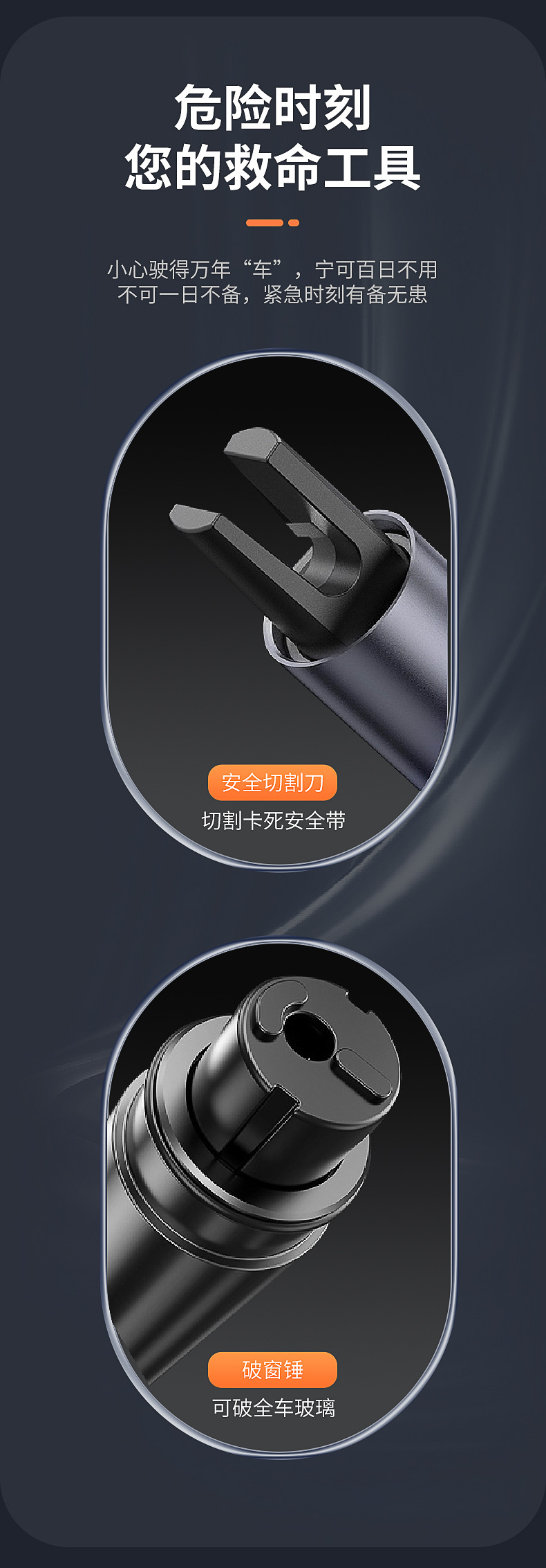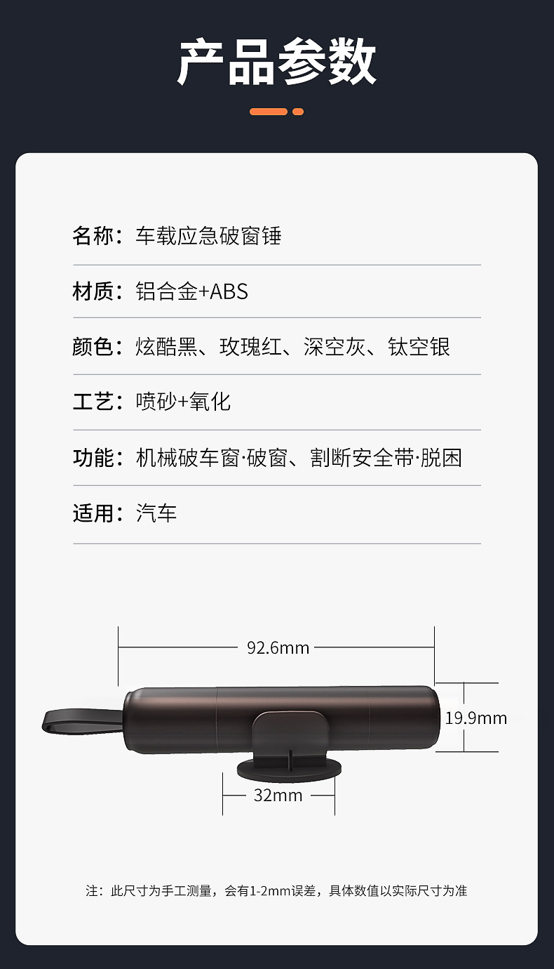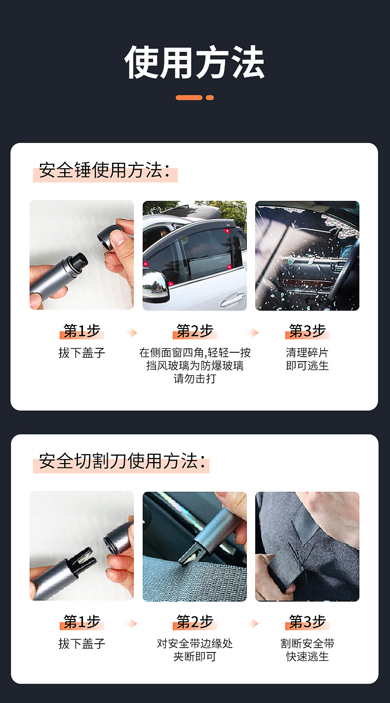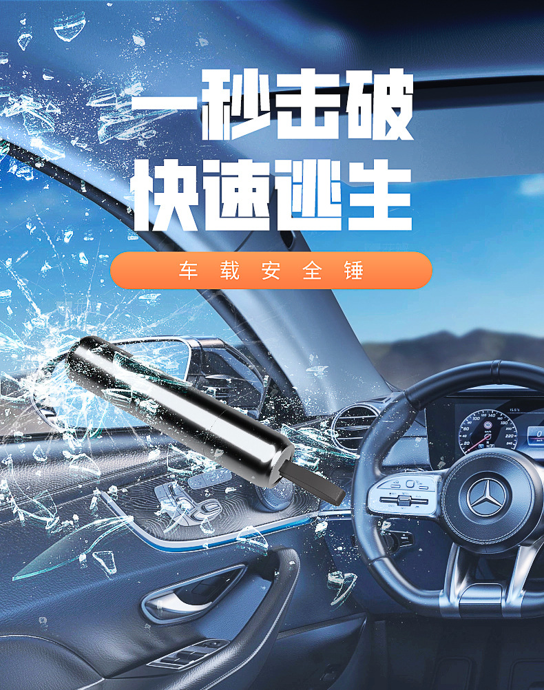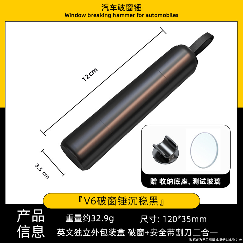 • V6 심플 블랙 [1 초 깨진 창문 + 안전 벨트 커터 내장]]