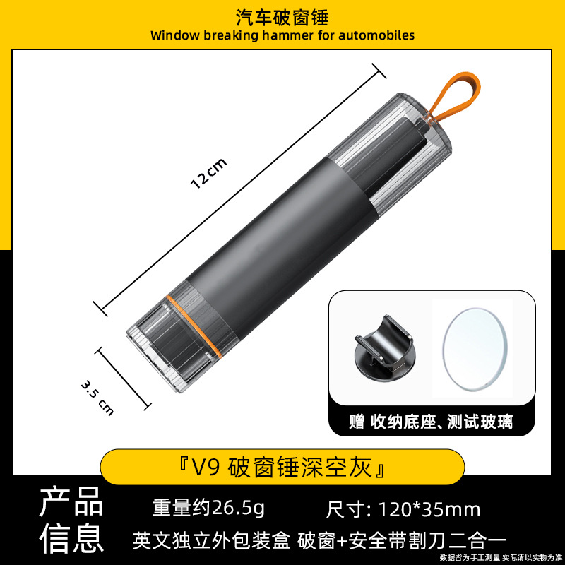 • V9 안전 망치 다크 그레이 [업그레이드 버전 + 테스트 유리 포함]