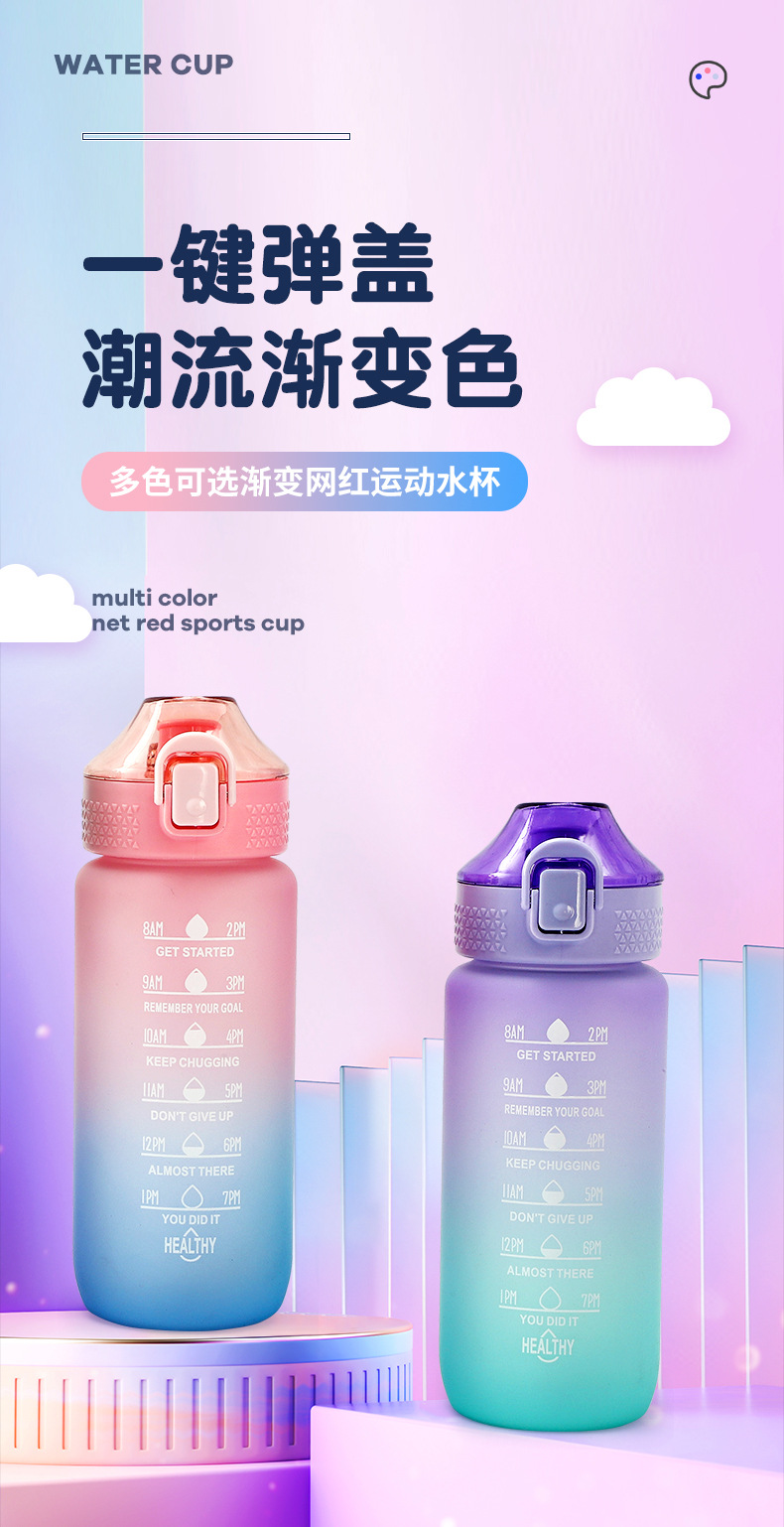 600ml 그라디언트 스포츠 워터 컵 간단한 젖빛 공간 워터 컵 고가치 스포츠 피트니스 휴대용 물병 도매스토어 가기