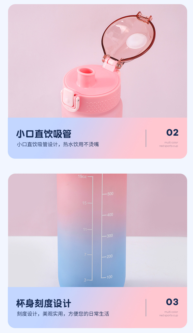 600ml 그라디언트 스포츠 워터 컵 간단한 젖빛 공간 워터 컵 고가치 스포츠 피트니스 휴대용 물병 도매