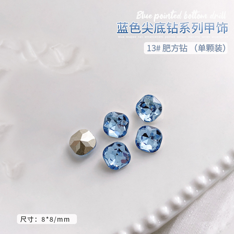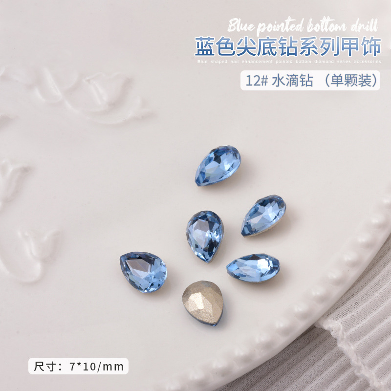네일 아트 우아한 블루 크리스탈 대형 다이아몬드 보석 얕은 블루 비뚤어진 복숭아 심장 뾰족한 바닥 다이아몬드 색상 모양의 더미 다이아몬드 네일 액세서리스토어 가기