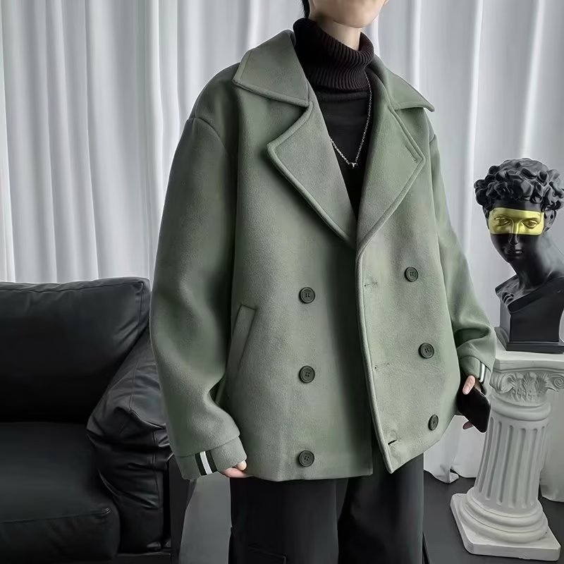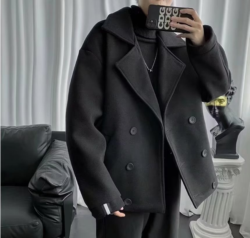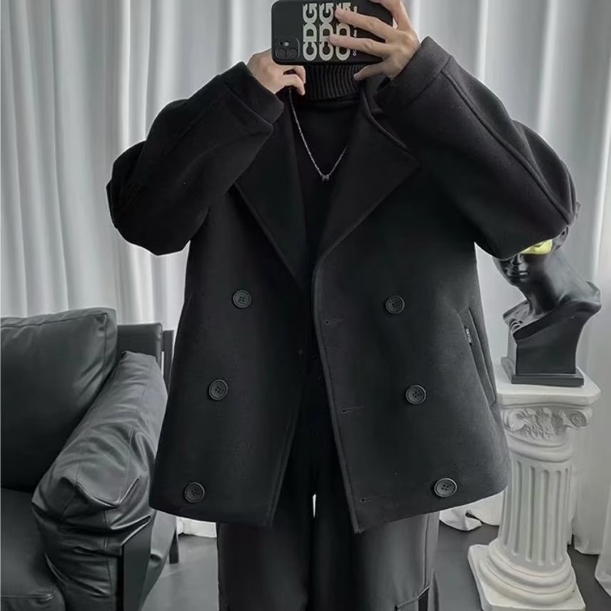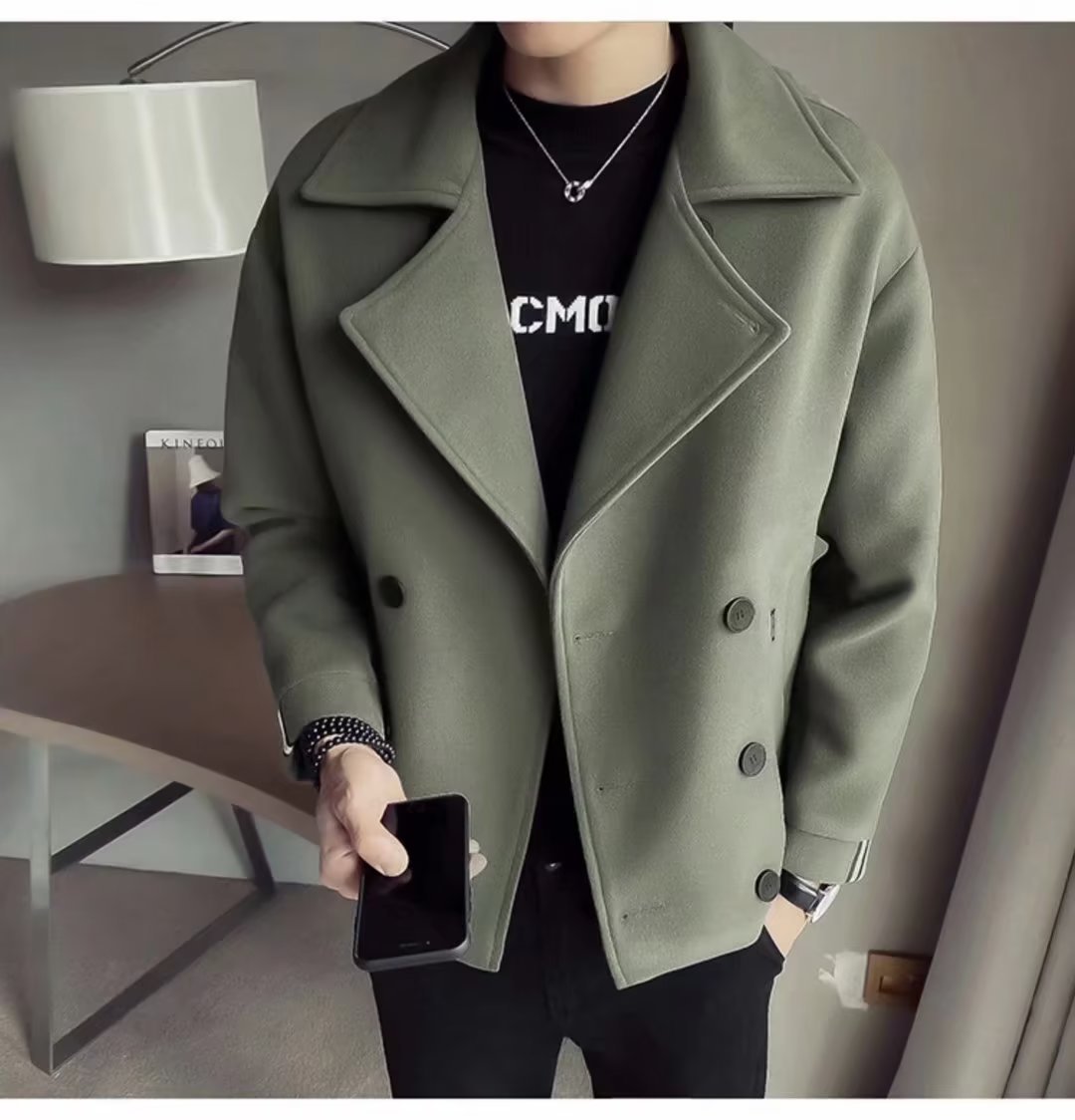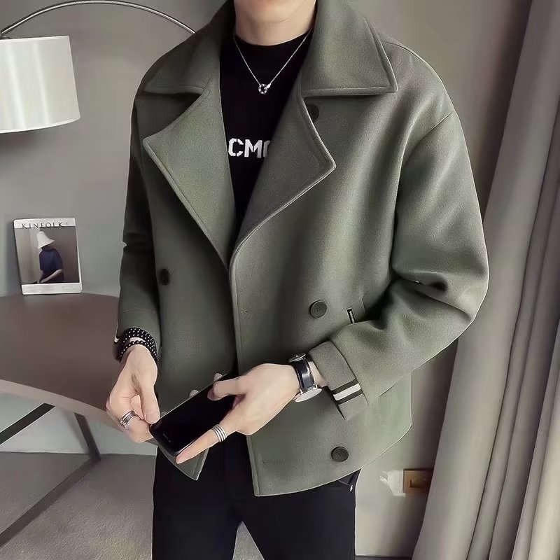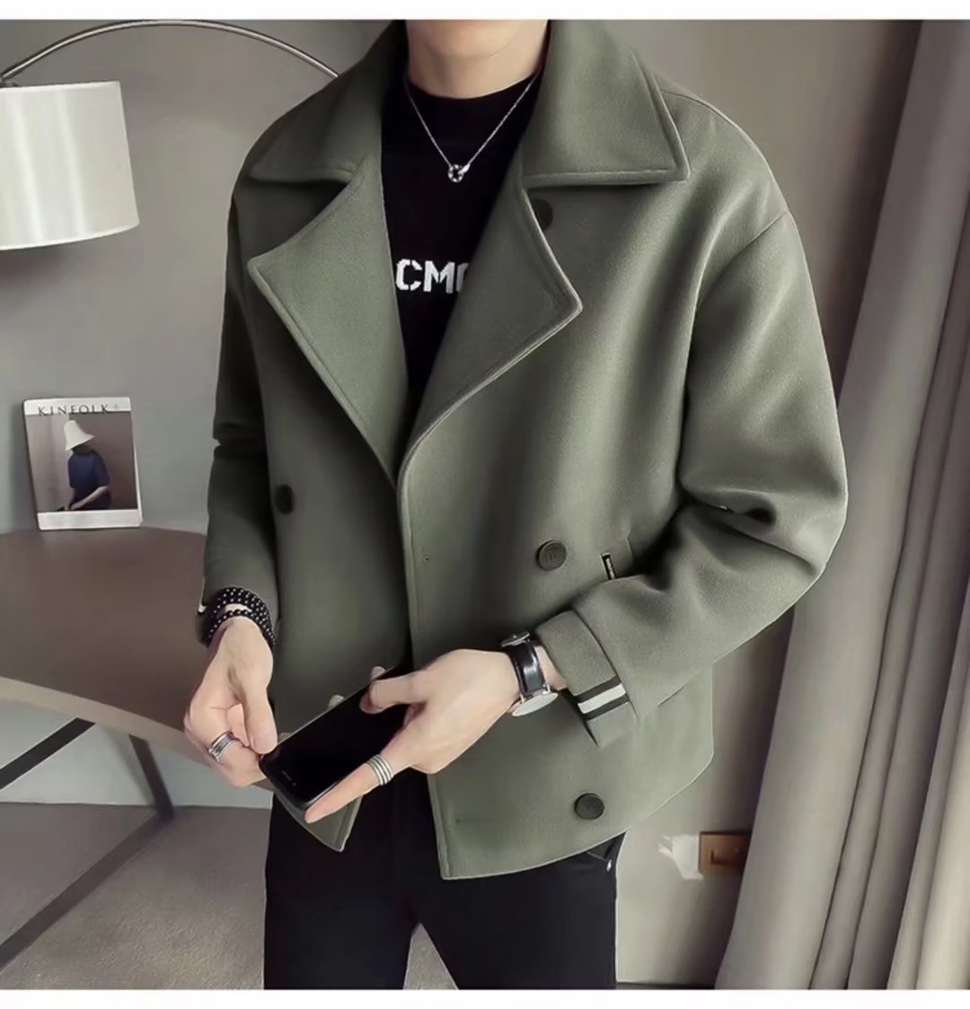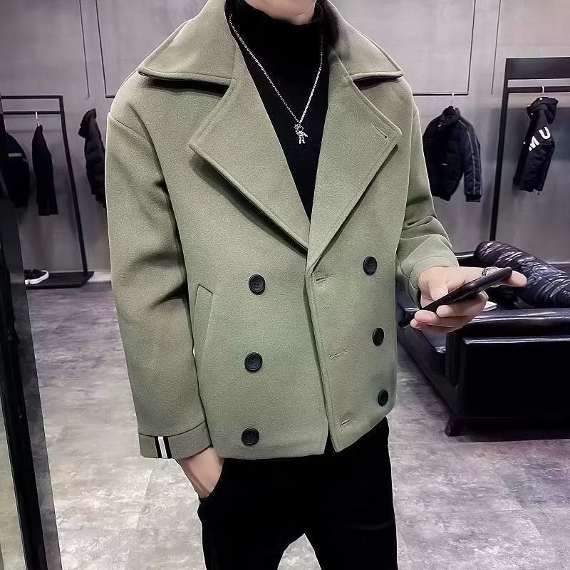 모직 코트 남자의 짧은 가을과 겨울 모직 코트 유행 브랜드 캐주얼 빛 성숙한 스타일 최고 한국 유행 남성 의류스토어 가기