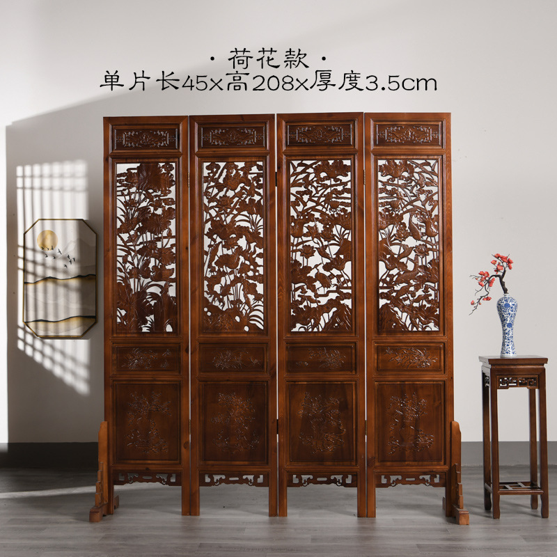 솔리드 우드 스크린 파티션 거실 중국어 접이식 모바일 조각 스크린 사무실 호텔 호텔 대피소 접이식 스크린