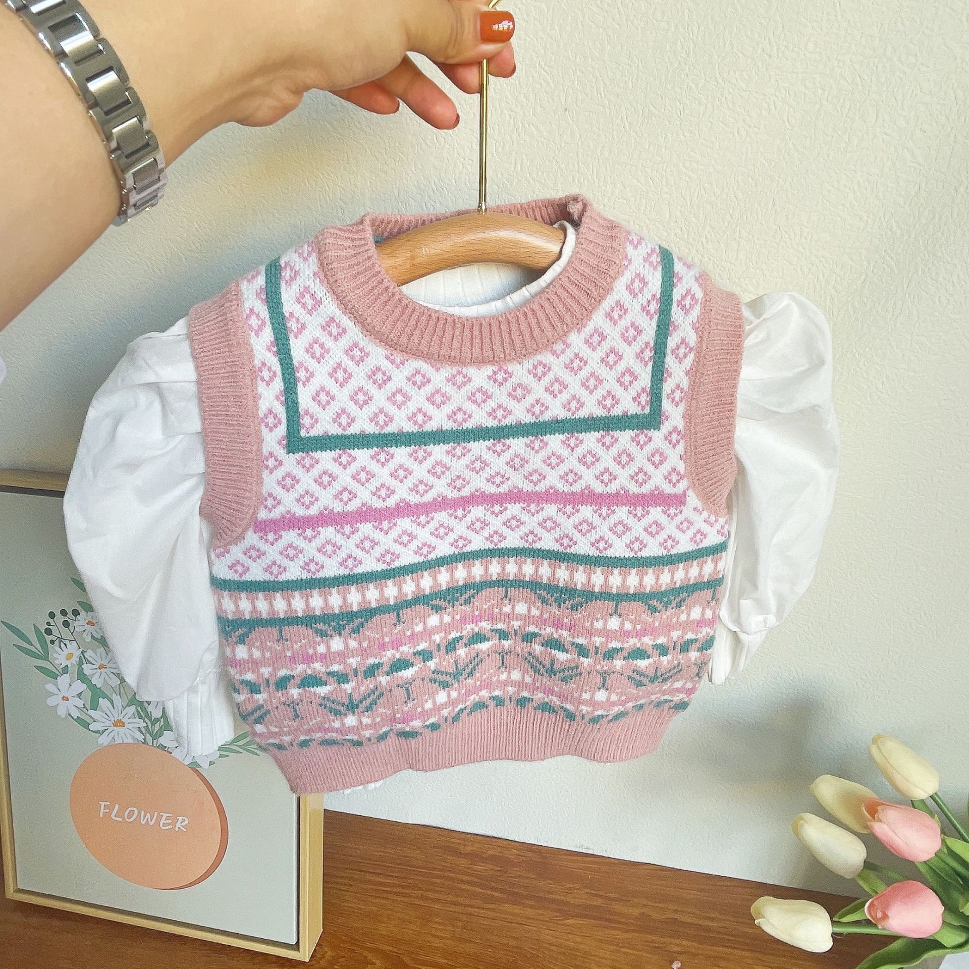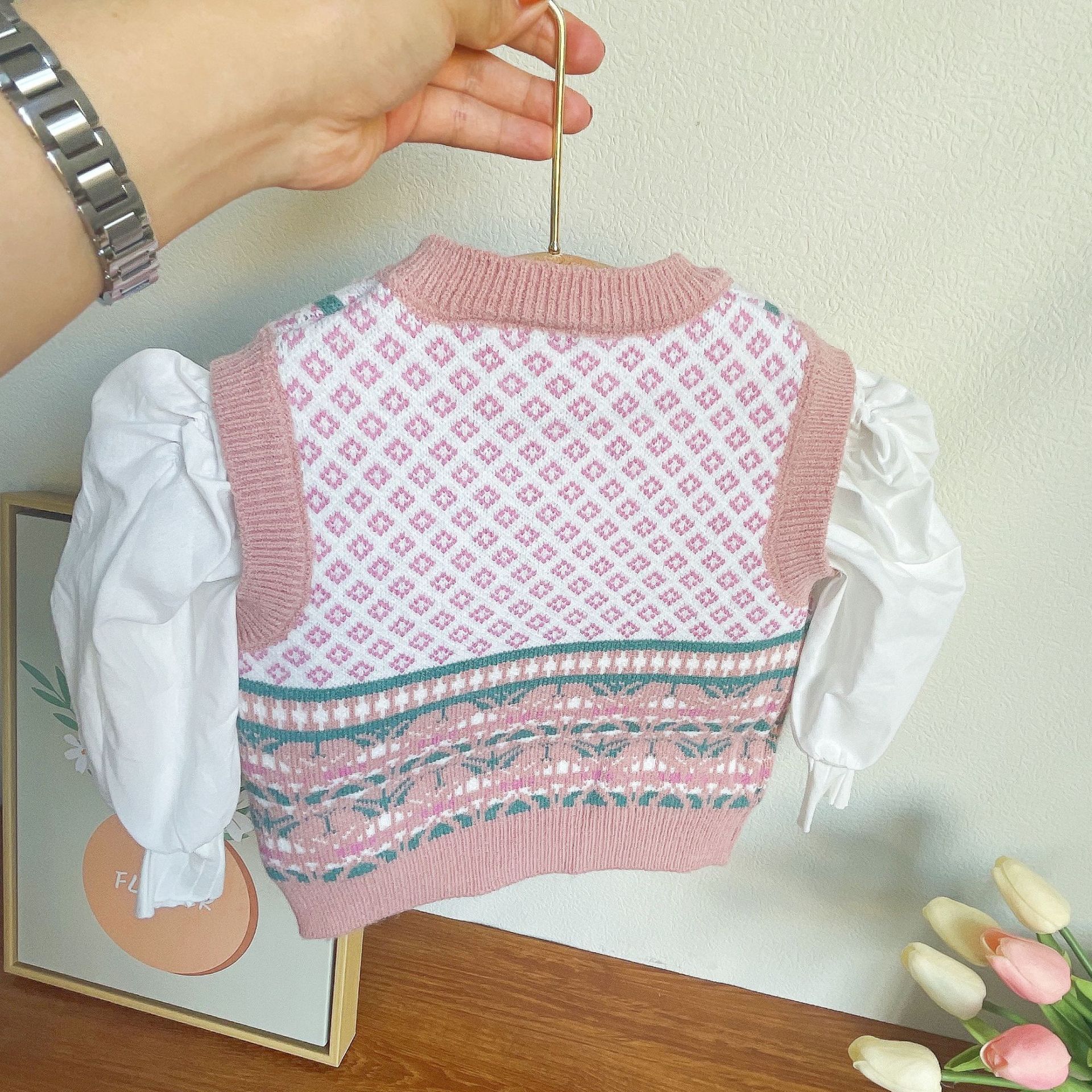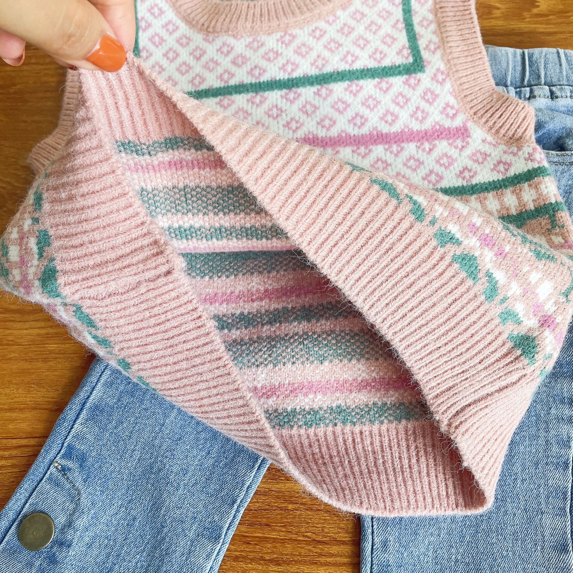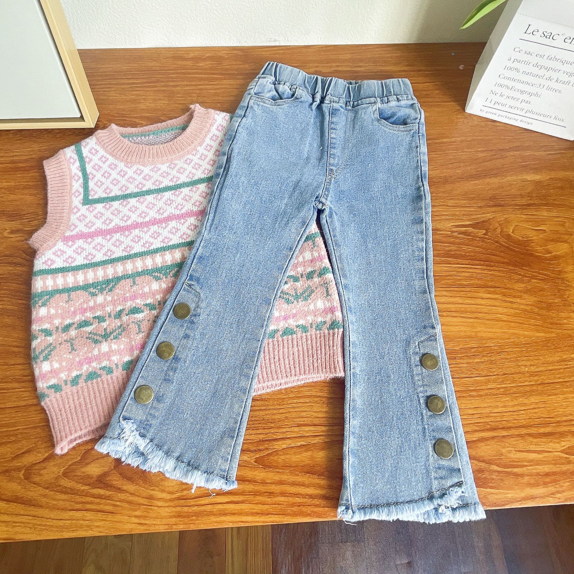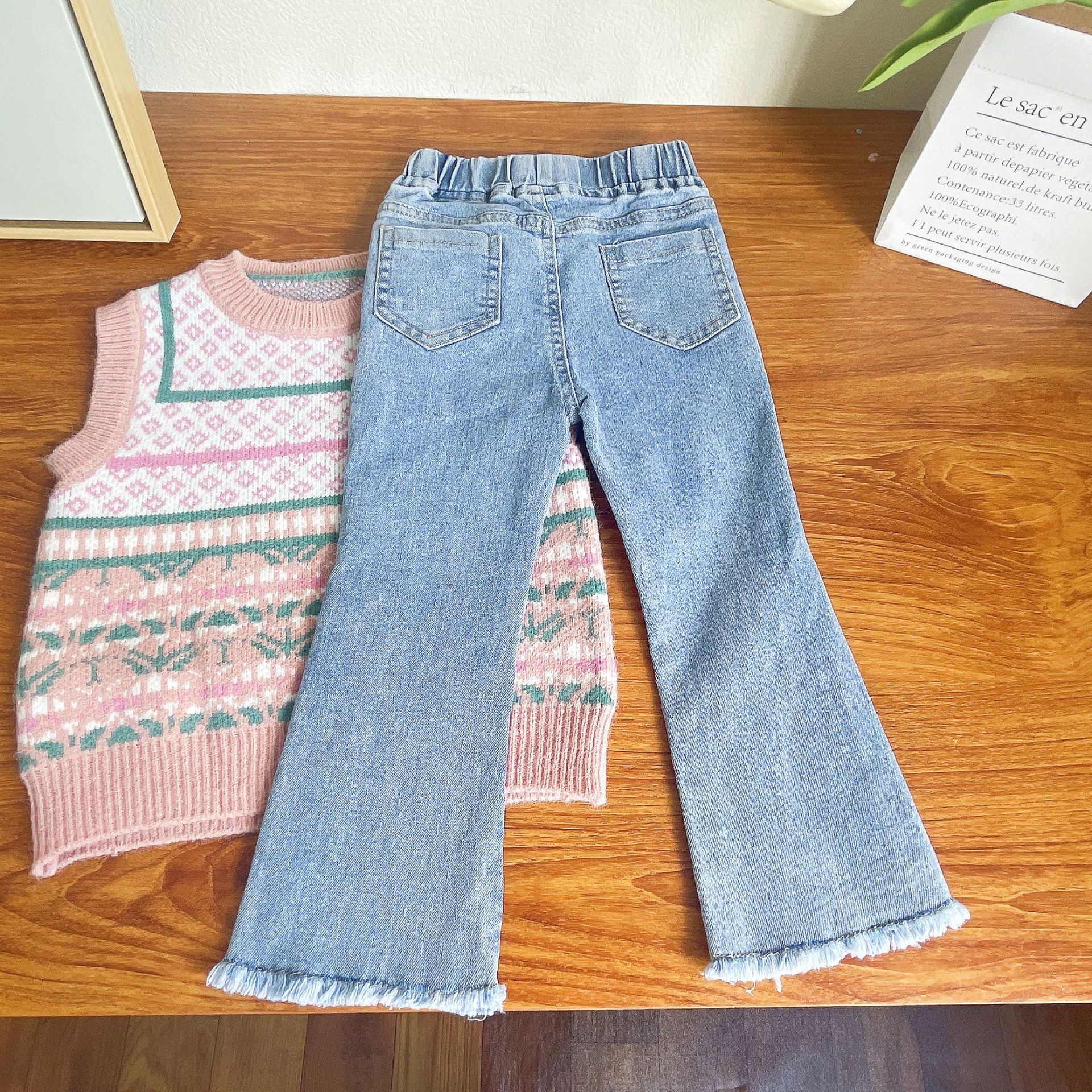 Ancorelala 가을과 겨울 새로운 소녀 세트 스웨터 조끼 바닥 셔츠 데님 플레어 팬츠 3 피스 세트