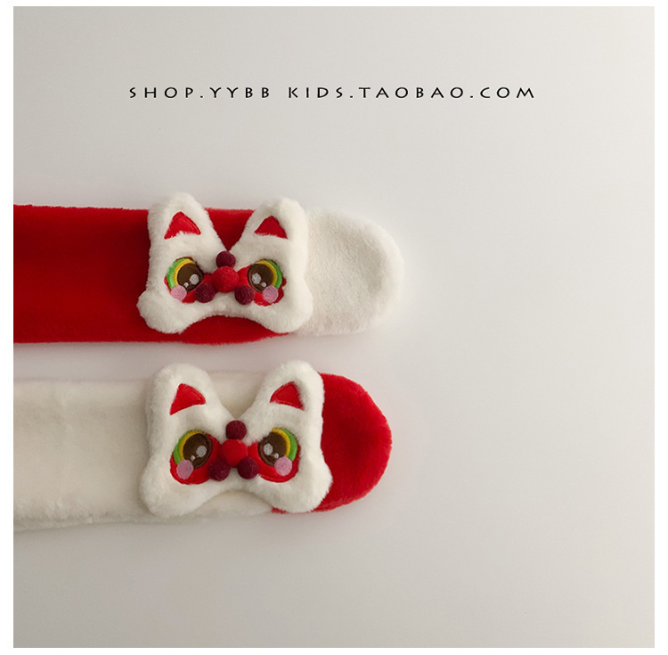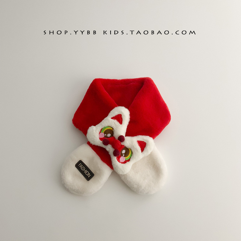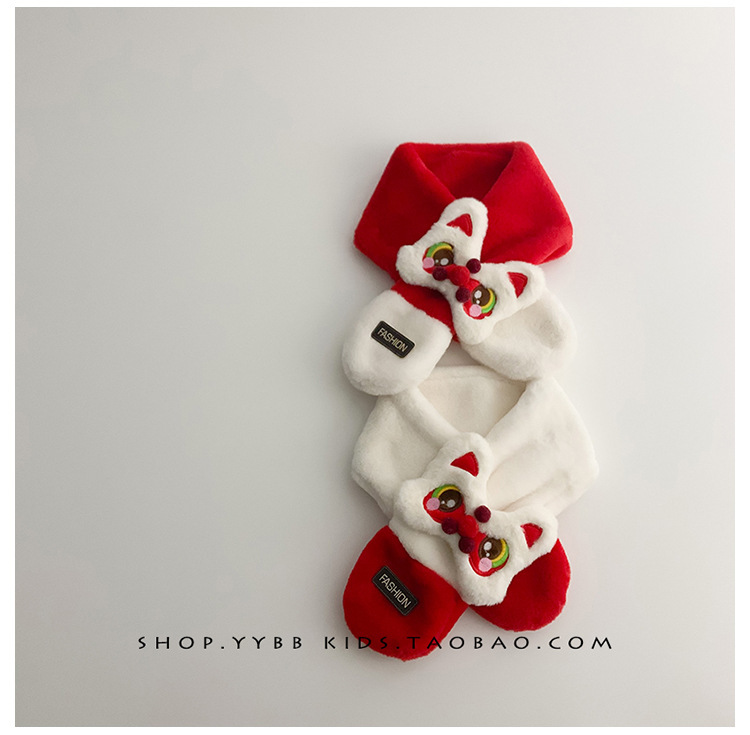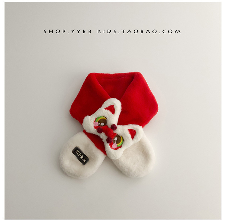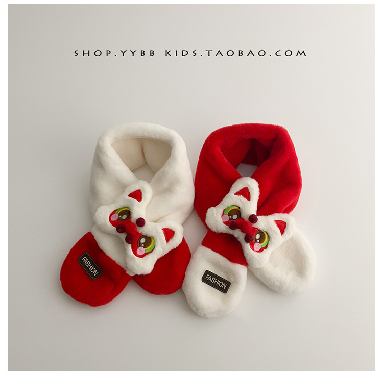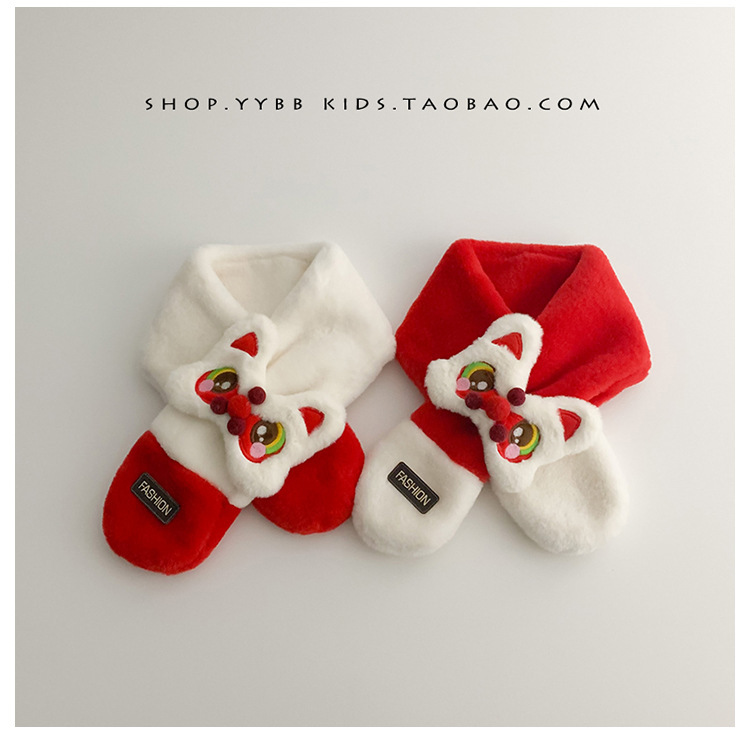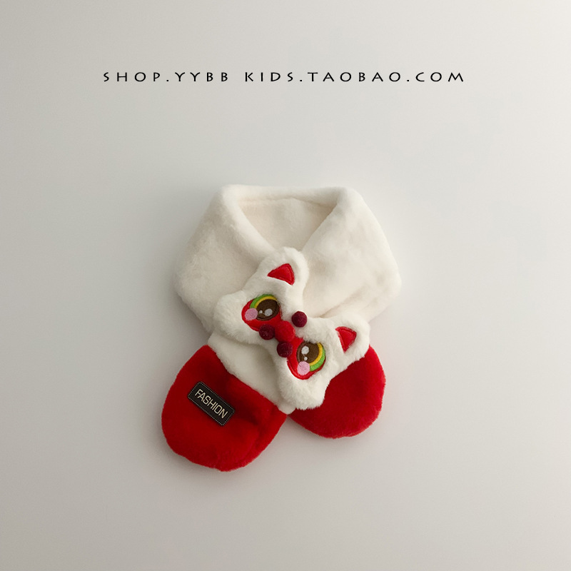 새해 사자 댄스 어린이 스카프 귀여운 봉제 가을 겨울 아기 따뜻한 두꺼운 남자와 여자의 크로스 스카프 세트