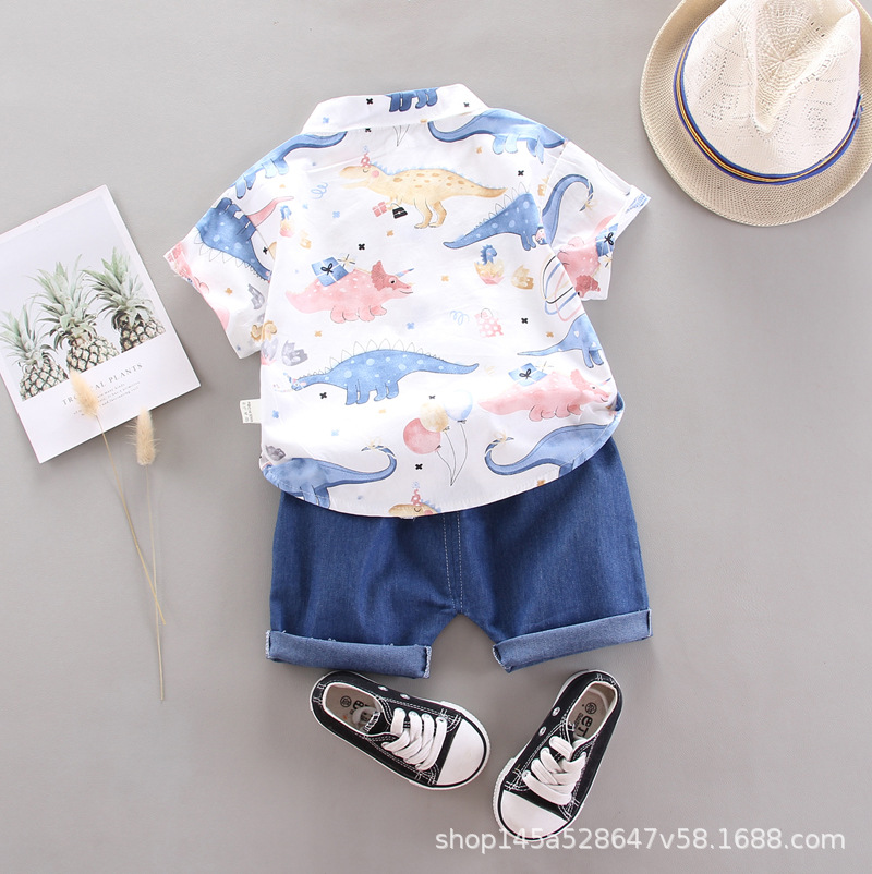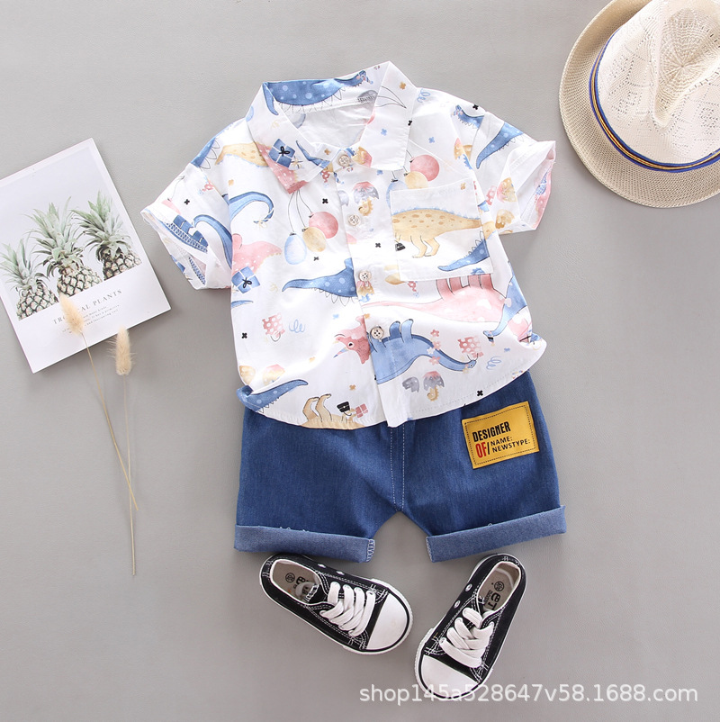 여름 반팔 소년 세트 잘 생긴 어린이 투피스 아기 옷 소년 엘 셔츠 여름 세트스토어 가기