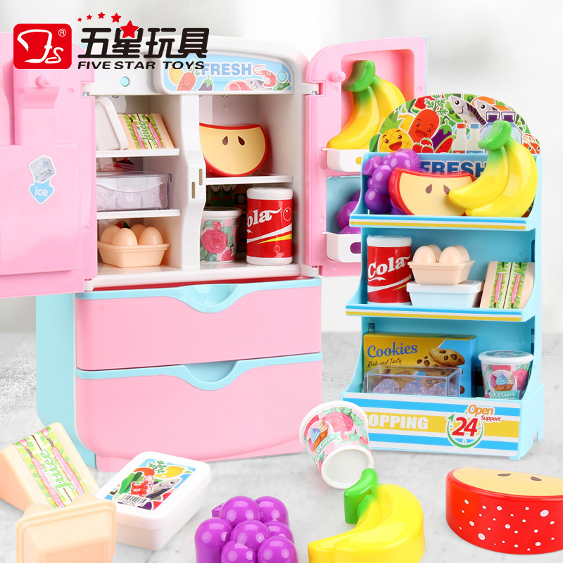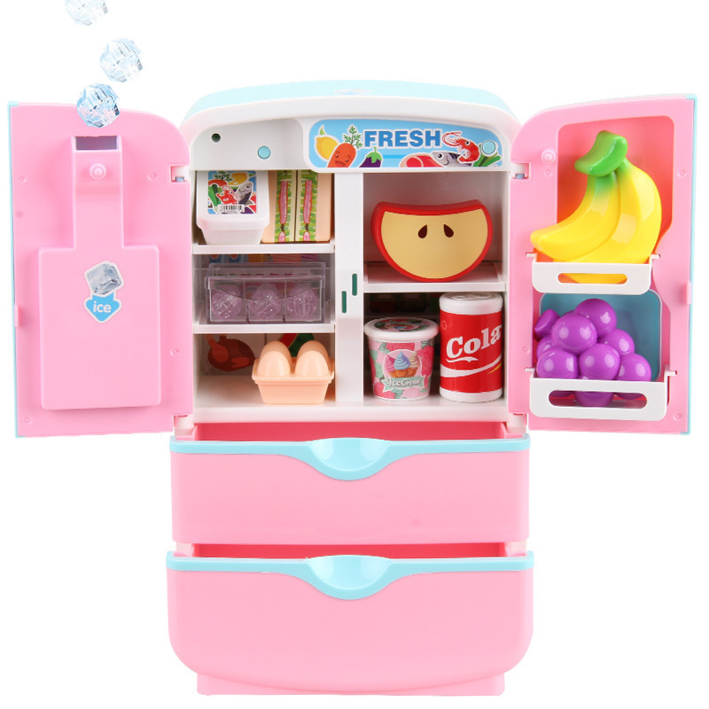 어린이 냉장고 장난감 조기 교육 시뮬레이션 소형 가전 양문 매직 냉장고 터치 인덕션 플레이 하우스 주방 완구스토어 가기