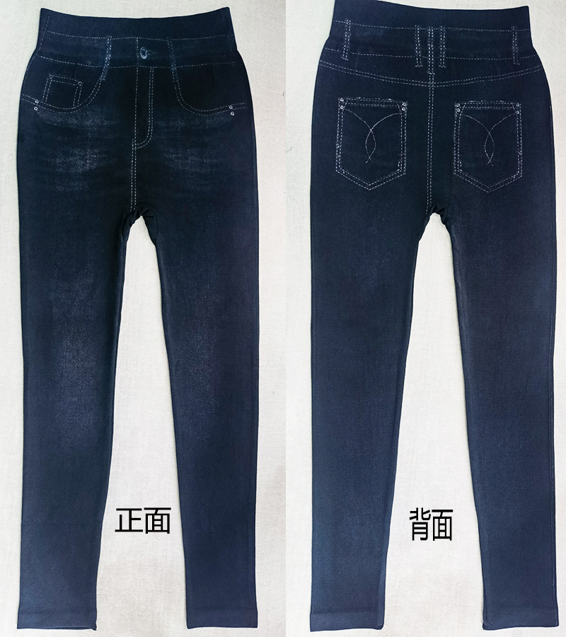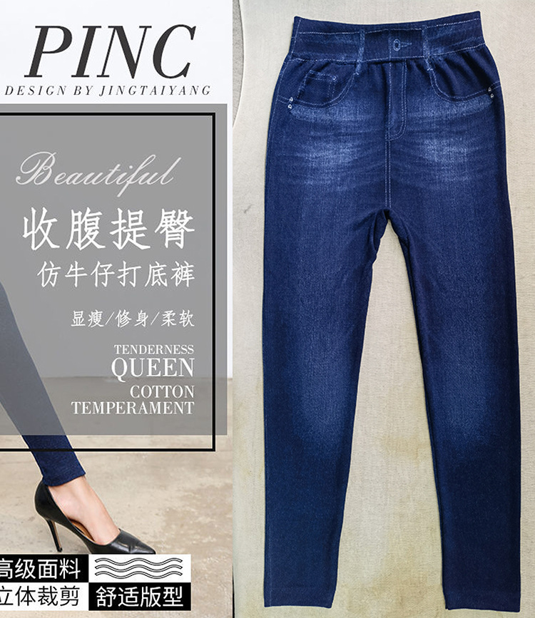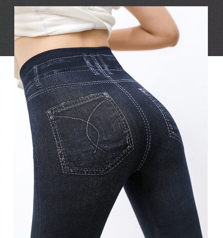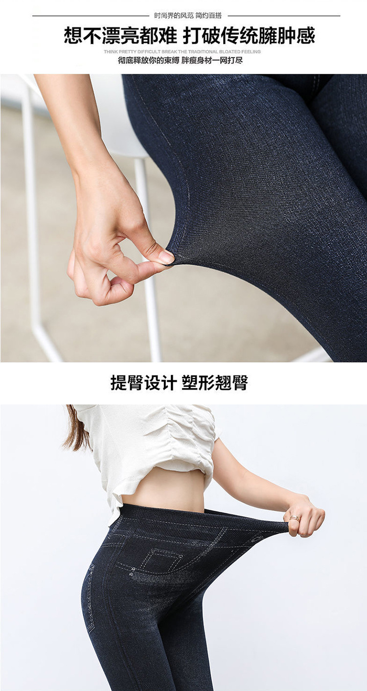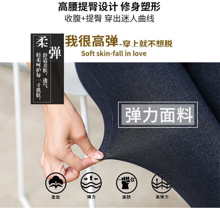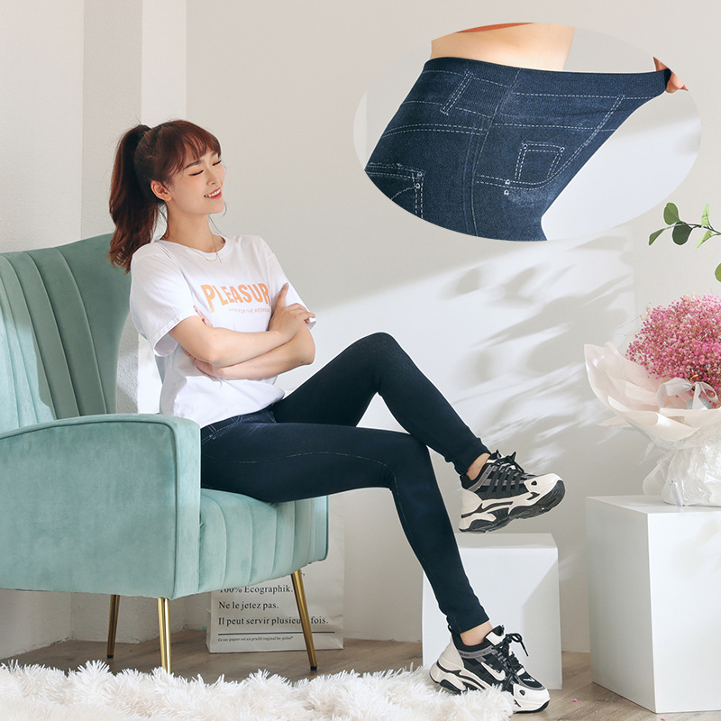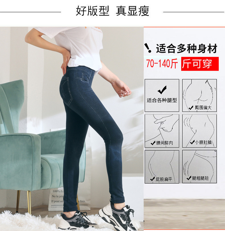 레깅스 여성용 얇은 슬림핏 슬리밍 모조 데님 레깅스 여성용 하이 웨이스트 고탄력 기모 두꺼운 크롭 팬츠스토어 가기