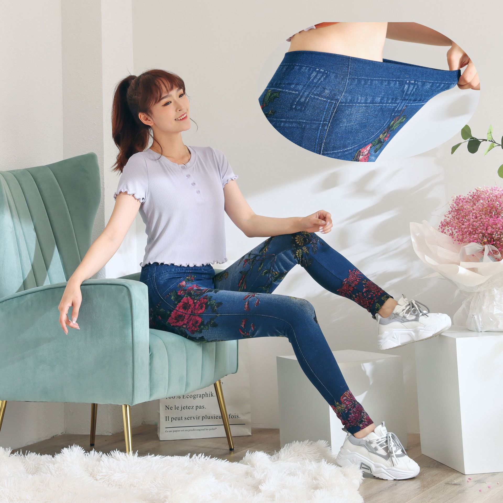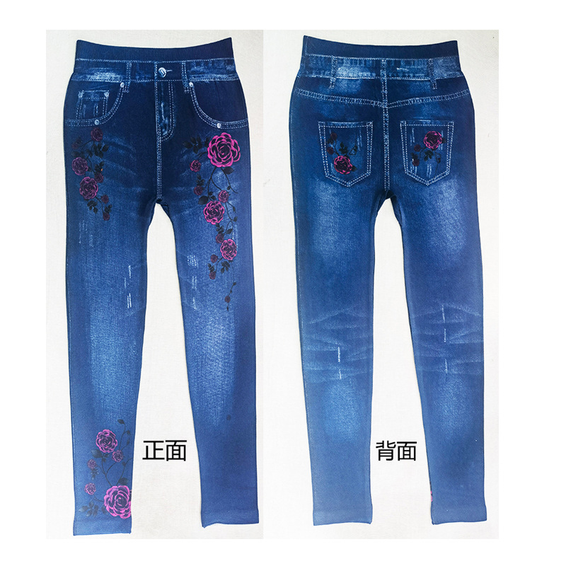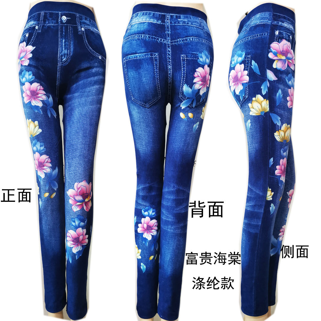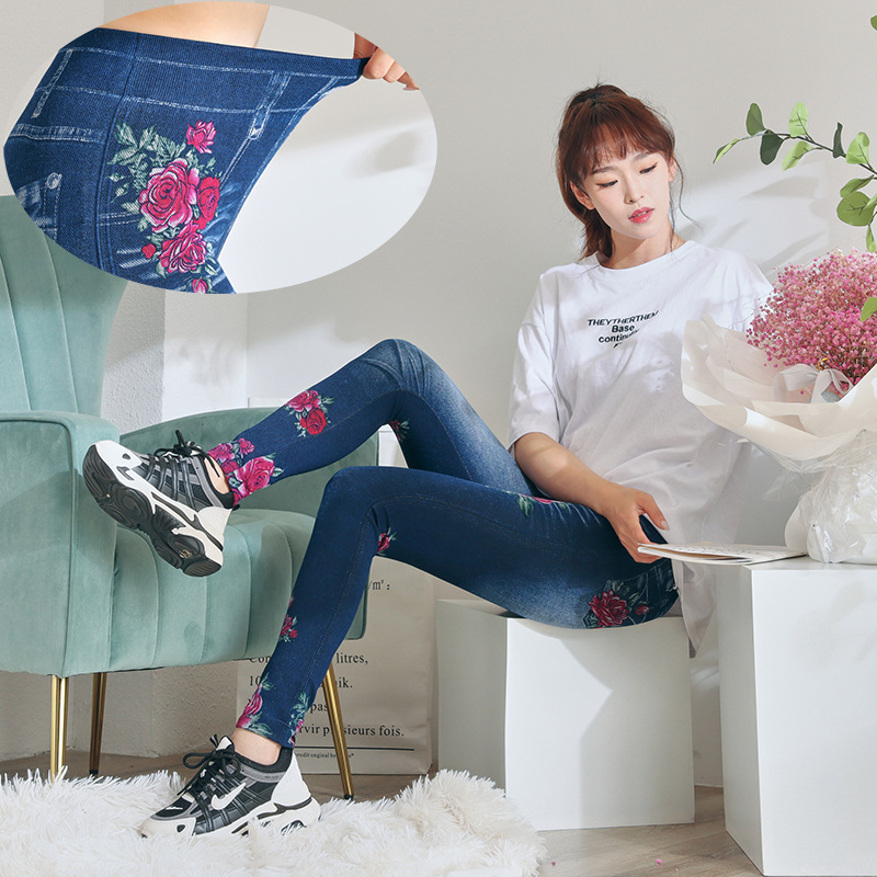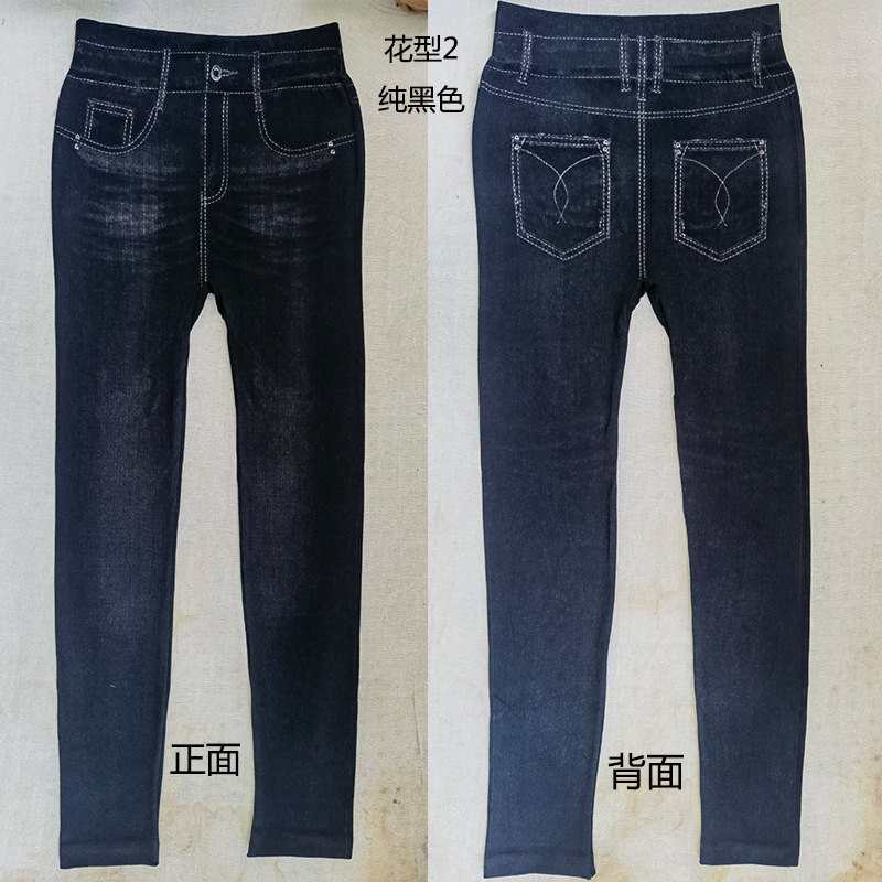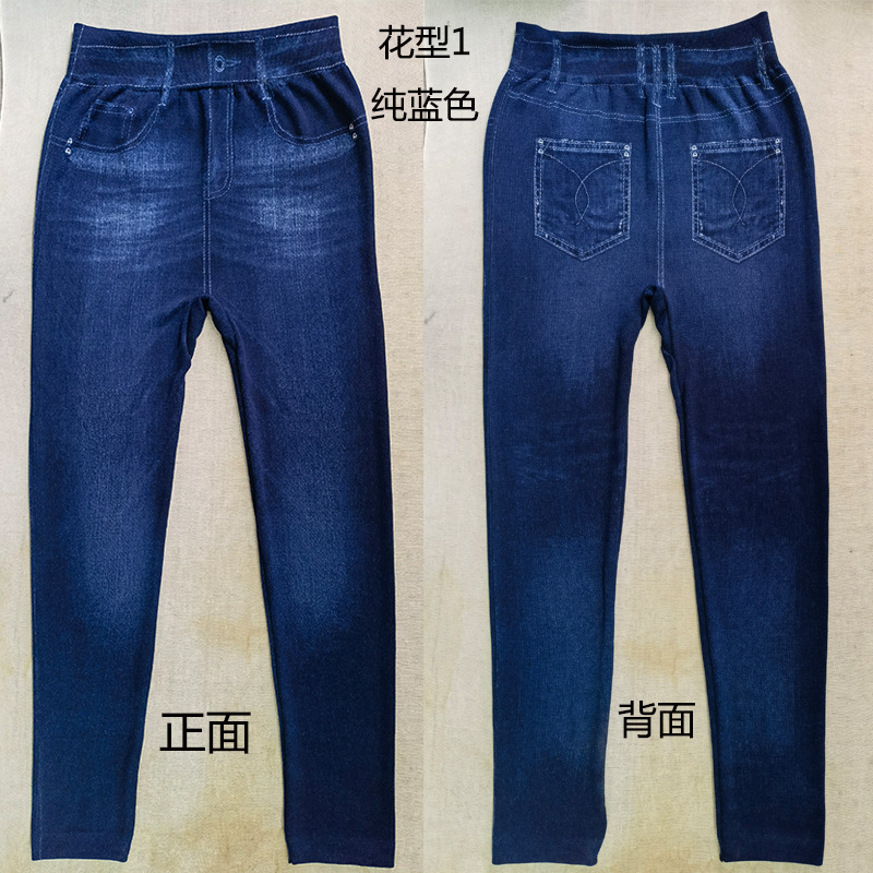 레깅스 여성용 얇은 슬림핏 슬리밍 모조 데님 레깅스 여성용 하이 웨이스트 고탄력 기모 두꺼운 크롭 팬츠스토어 가기