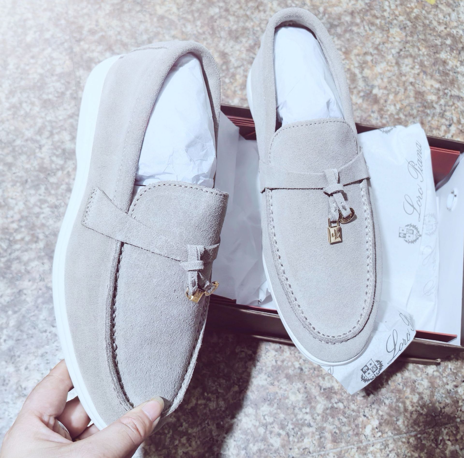 공장 재고 직판 2023 하이 버전 LP 원 페달 소프트 바닥 캐주얼 여성 신발 편안한 다목적 가죽 로퍼스토어 가기