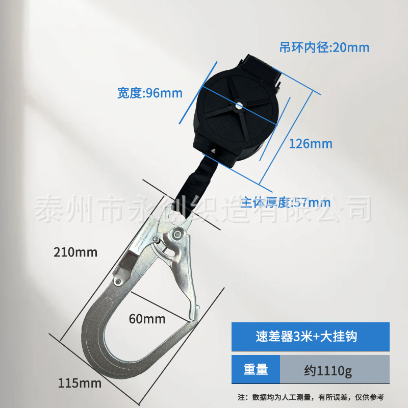 1.5m3 m 안전 벨트 속도 차동 웨빙형 자동 잠금 추락 피뢰기 내림 자동 복구 개인 작동 보호