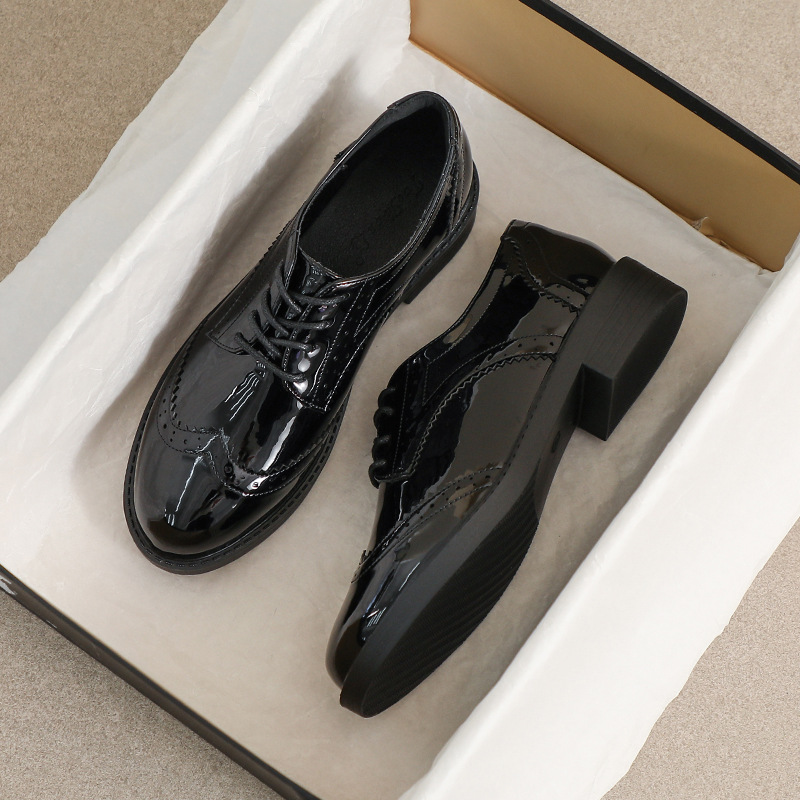 여성용 작은 가죽 신발 2025 가을 새로운 영국 스타일 레이스 업 플랫 바닥 얇은 부드러운 바닥 검은 색 비니 다용도 로퍼스토어 가기