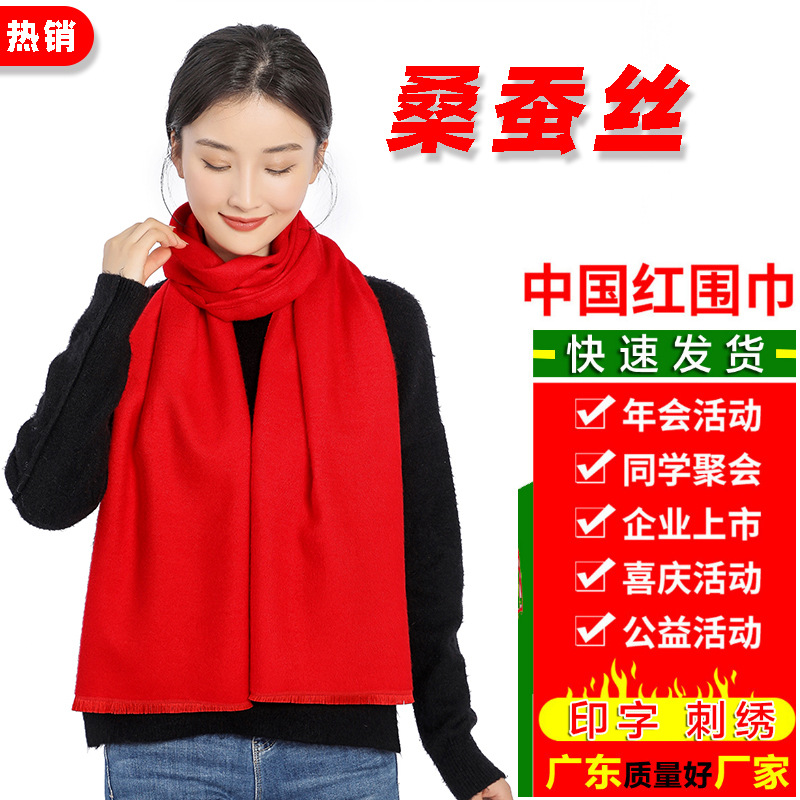 레드 스카프 맞춤형 로고 자수 회사 연례 회의 레드 스퀘어 스카프 부티크 레드 스카프 맞춤형 작은 뽕나무 실크