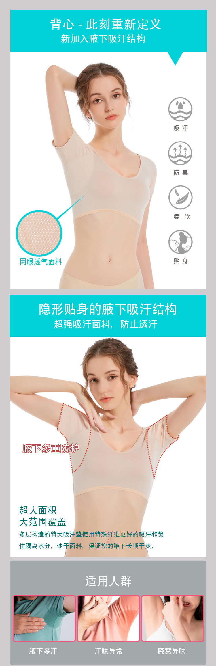스팟 겨드랑이 땀 패드 조끼 반팔 통기성 땀 얼룩 방지 땀 흡수 치킨 하트 칼라 (양면 착용 가능)