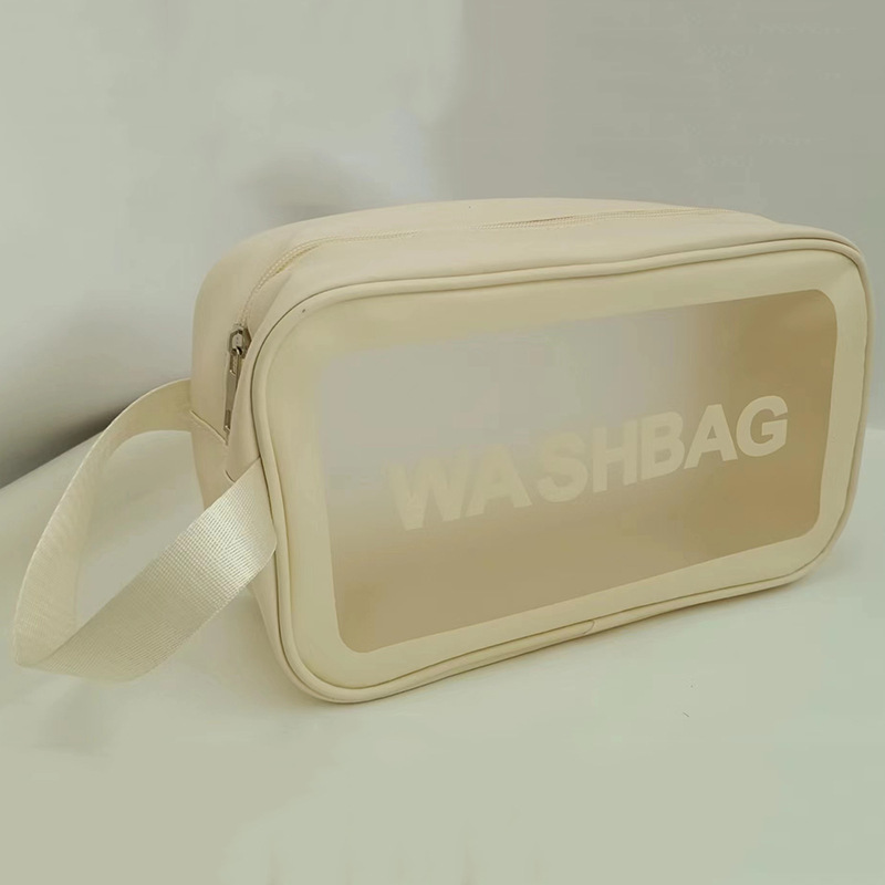 • 베이지 대형 싱글 레이어 세면도구 가방