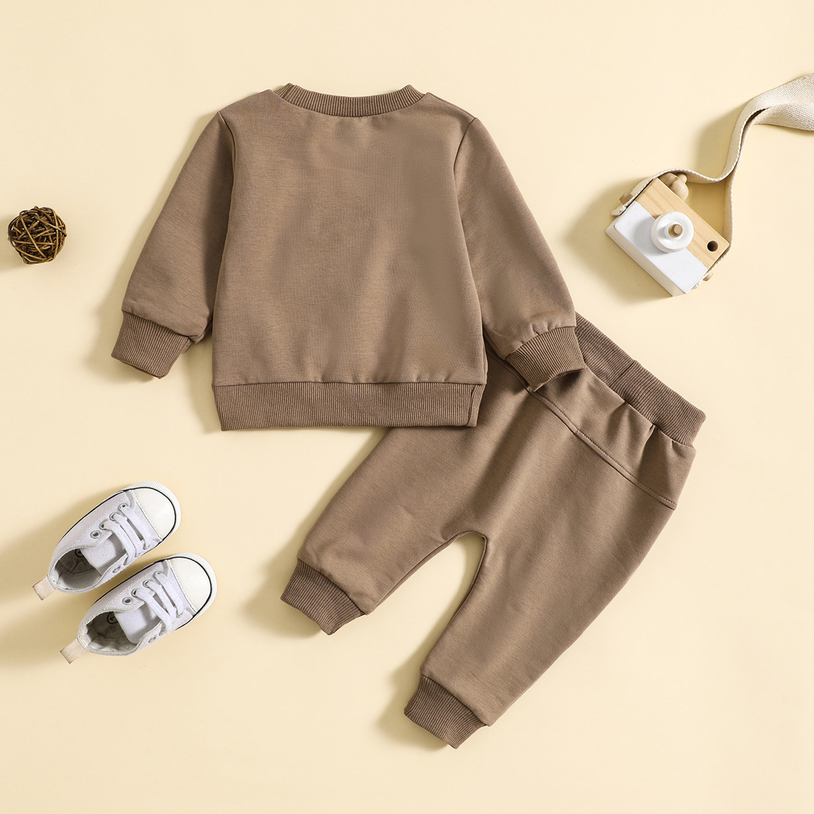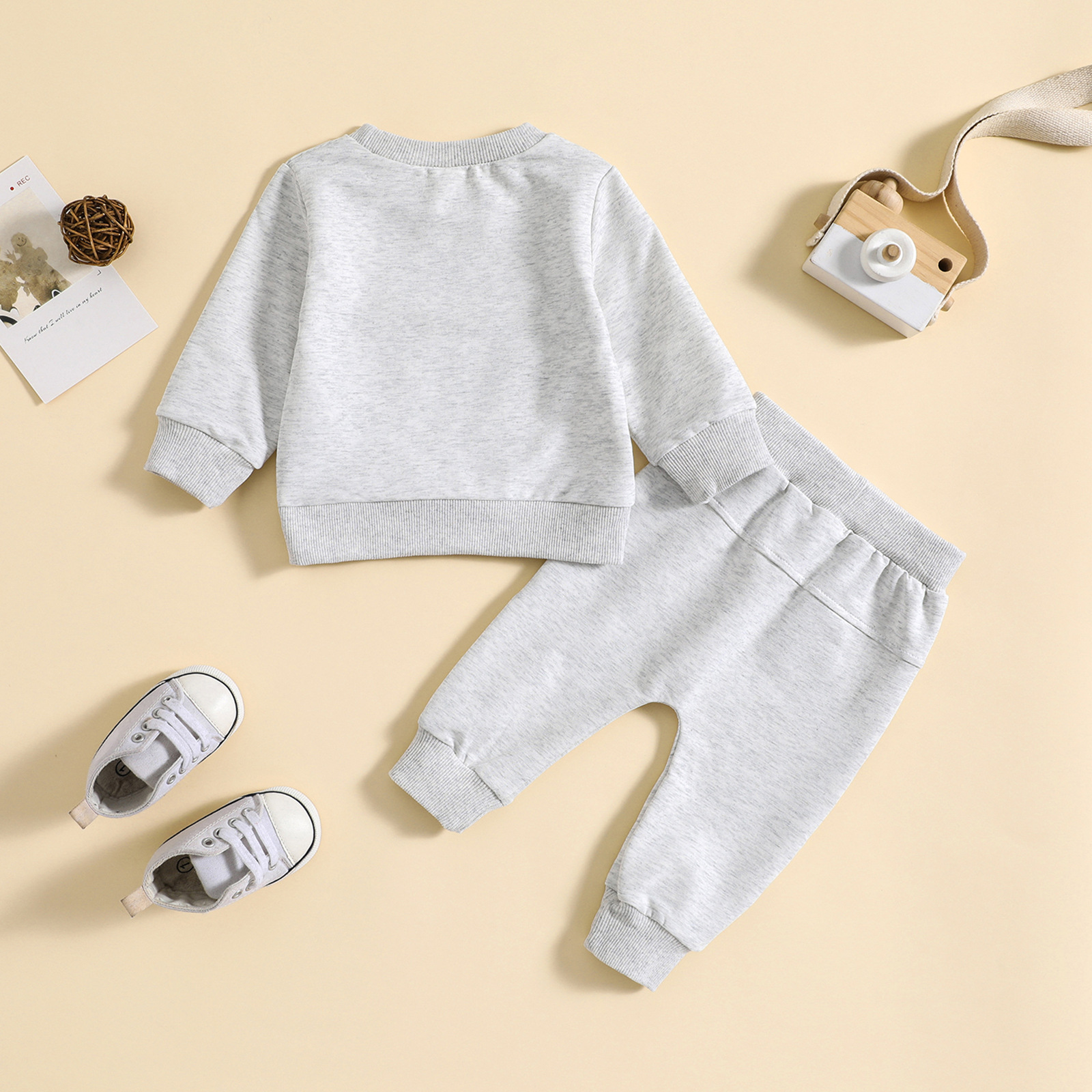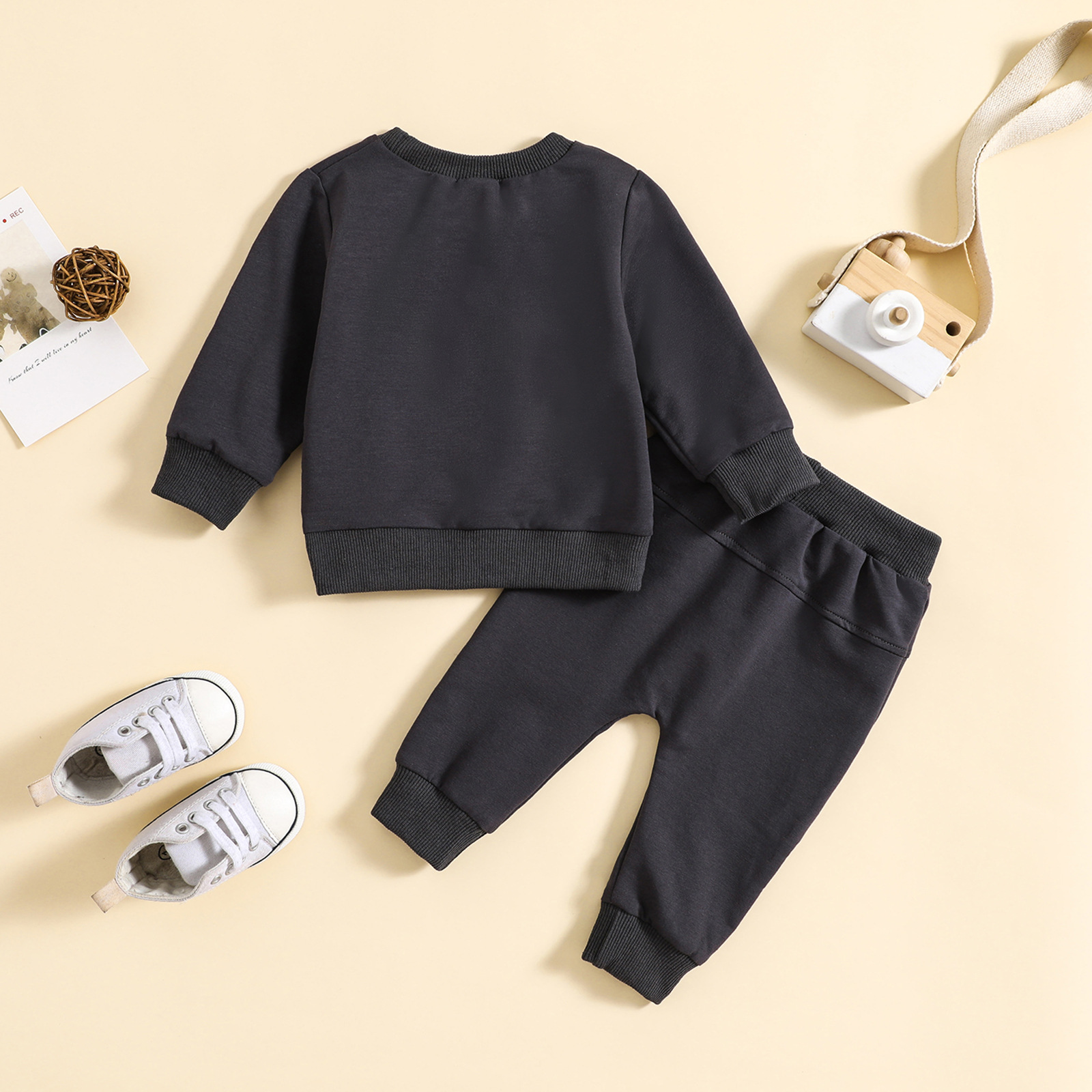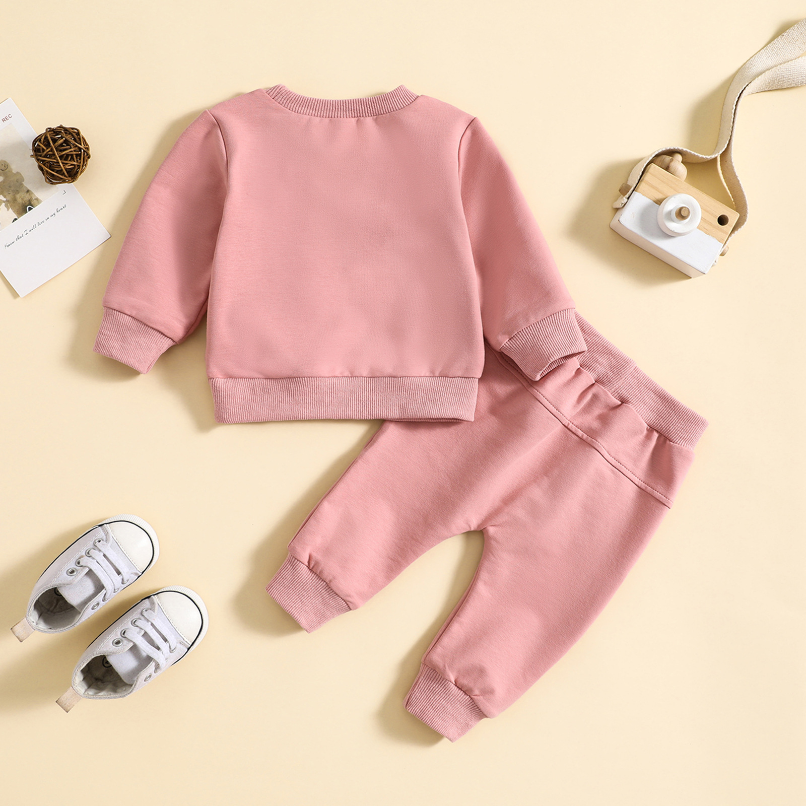 크로스 보더 아동복 봄과 가을 새로운 단색 문자 자수 긴 소매 스웨터 바지 투피스 세트 머리카락스토어 가기