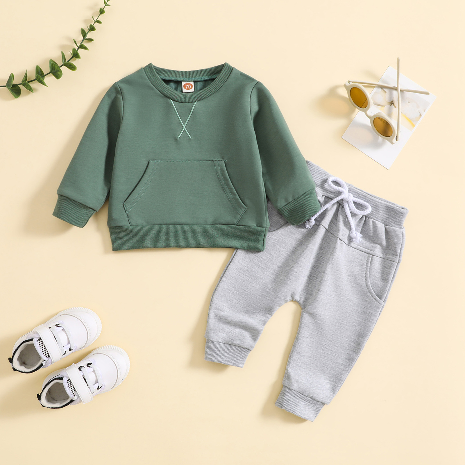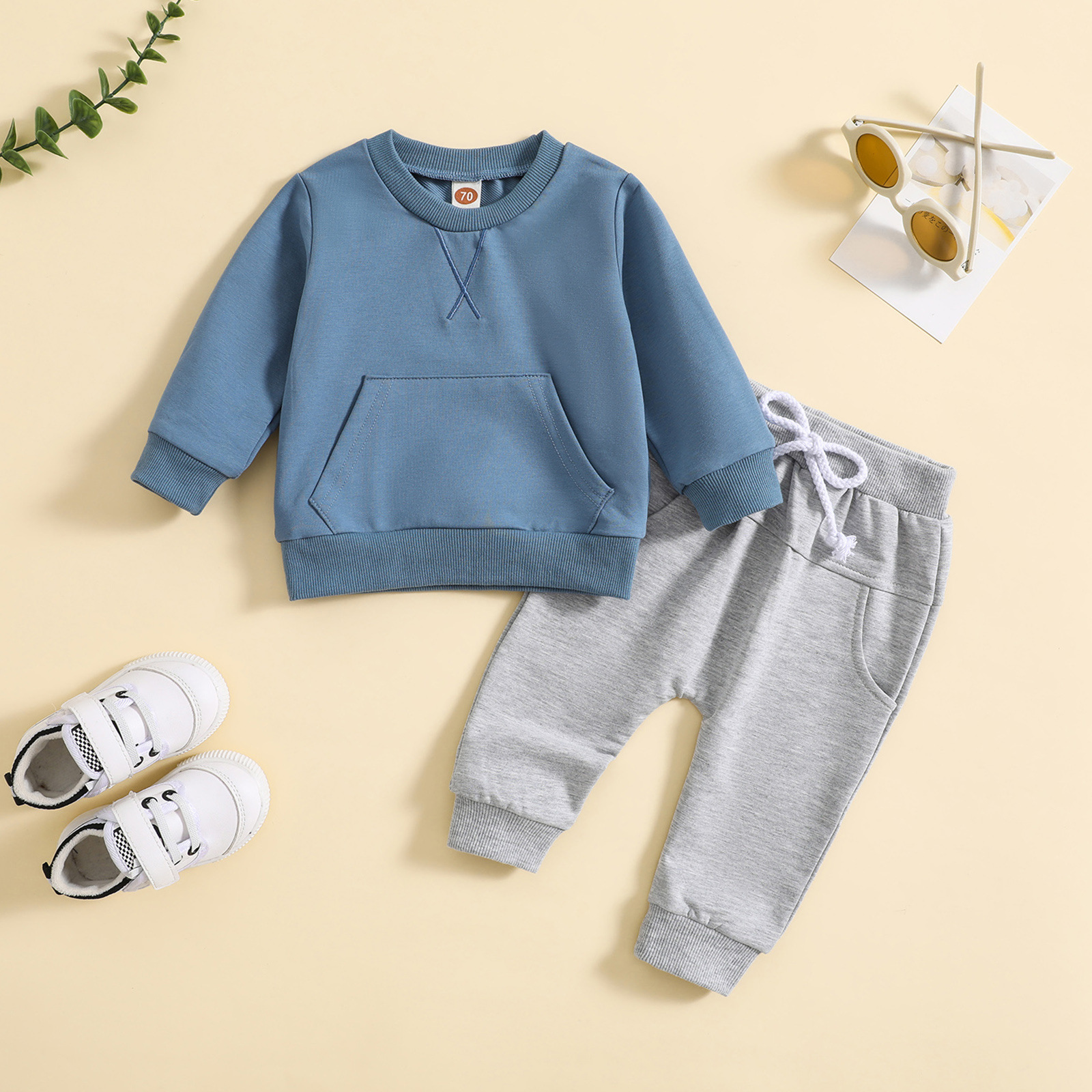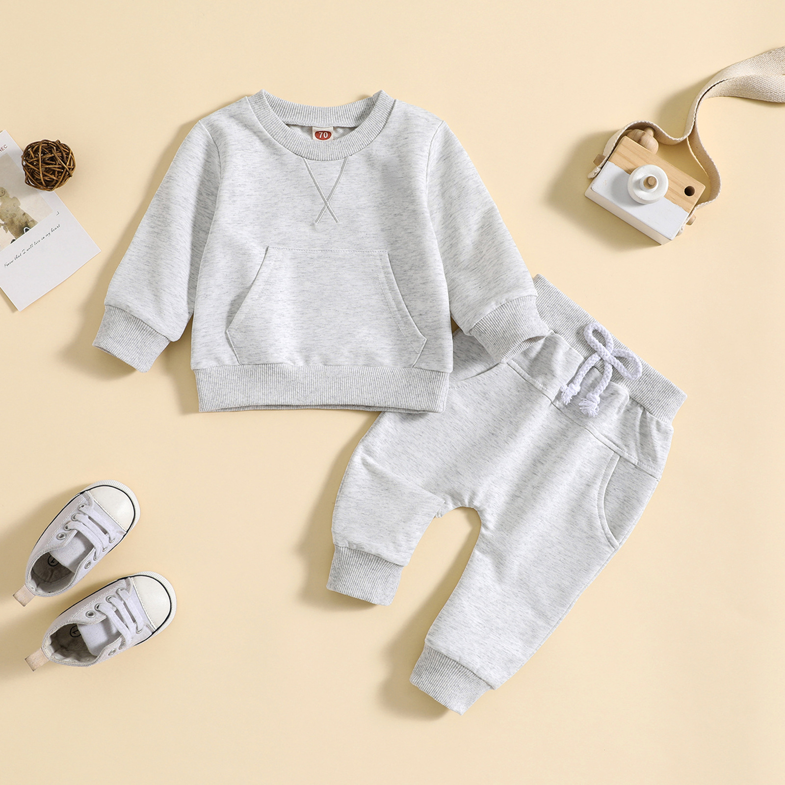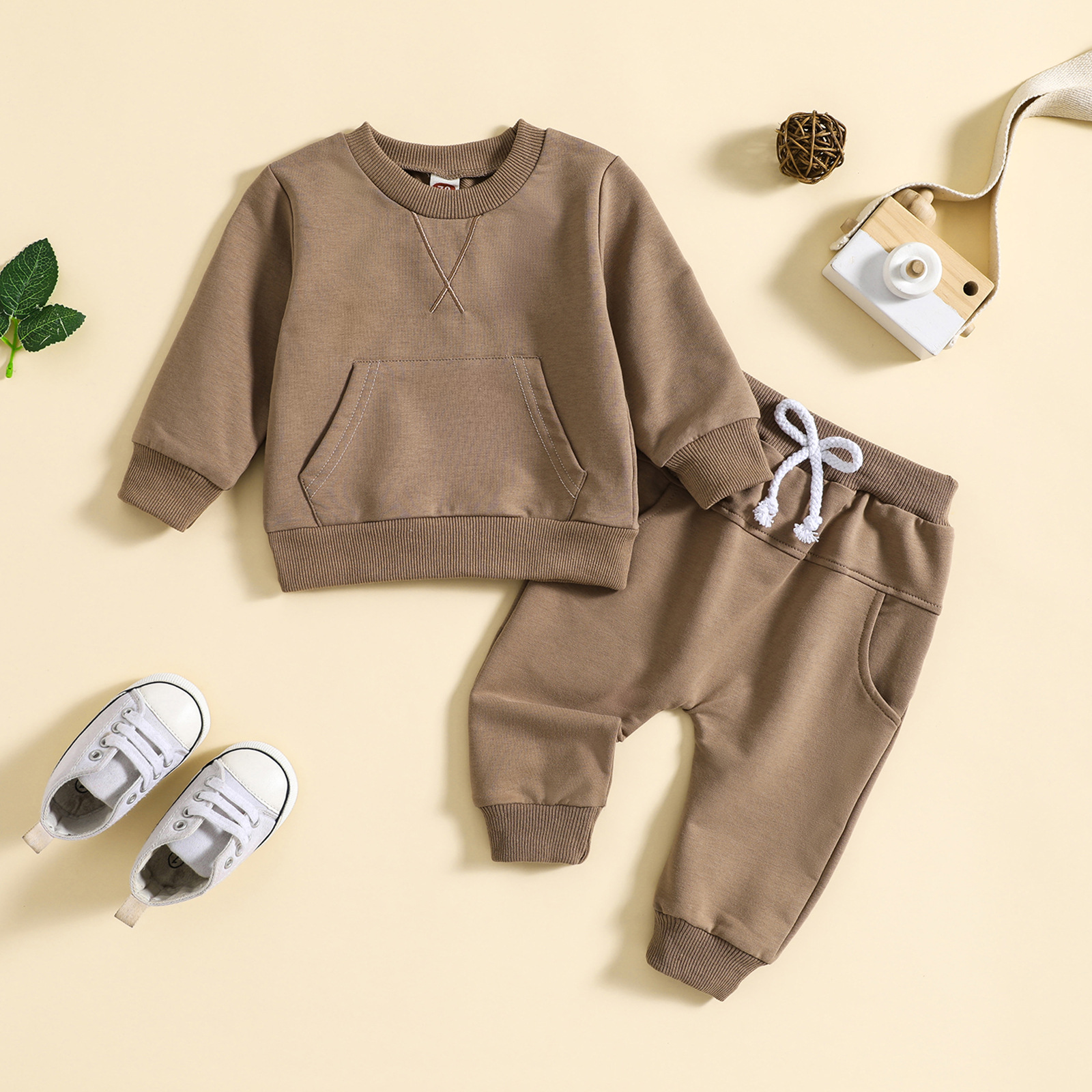 크로스 보더 아동복 봄과 가을 새로운 단색 문자 자수 긴 소매 스웨터 바지 투피스 세트 머리카락스토어 가기
