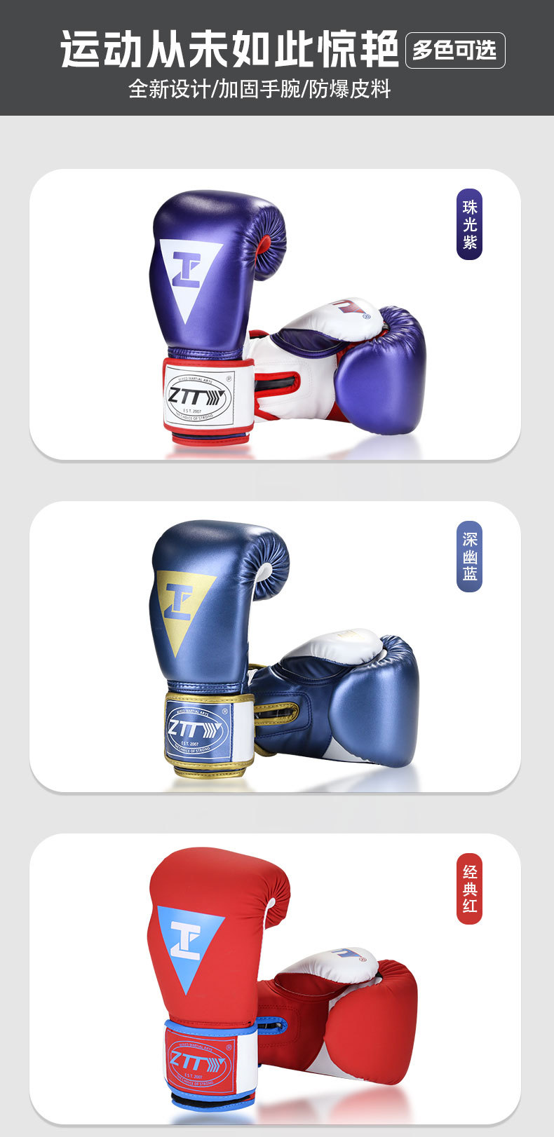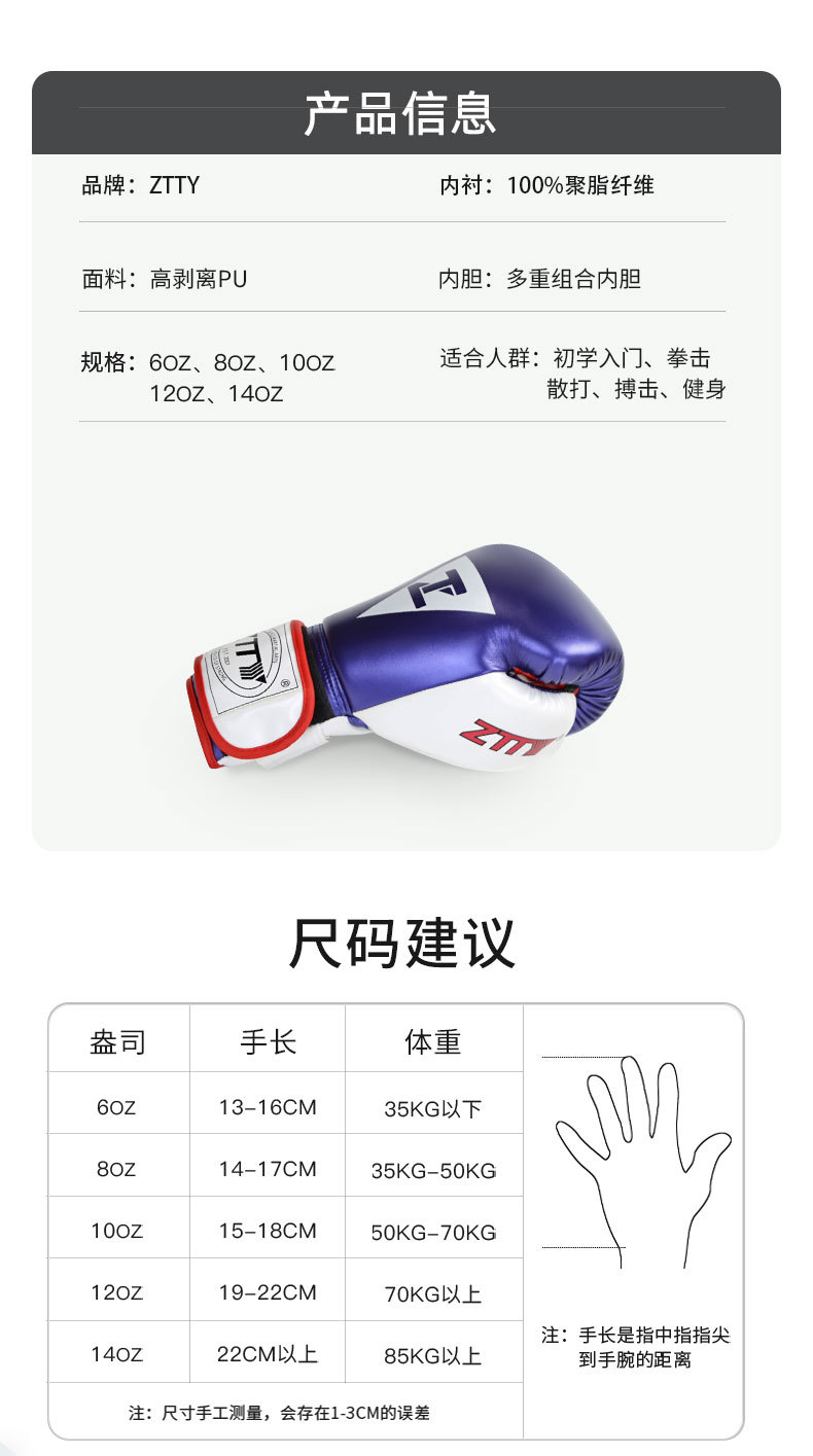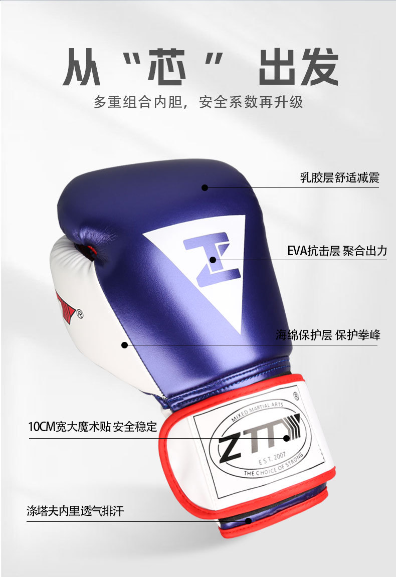 ZTTY 권투 장갑 도매 새로운 밝은 가죽 두꺼운 PU 권투 장갑 성인 및 어린이 훈련 경쟁 권투 장갑 격투 손 보호대