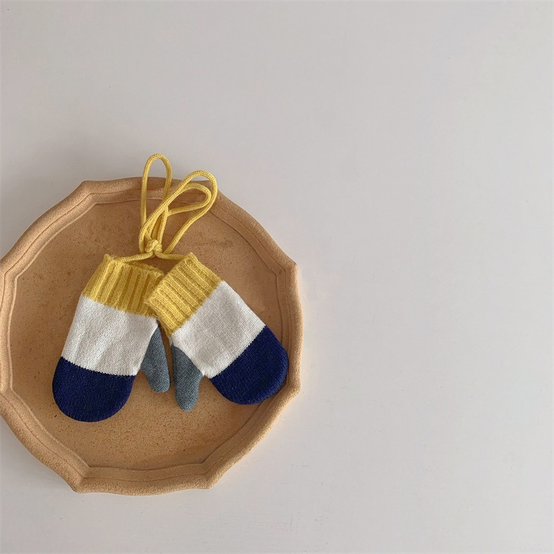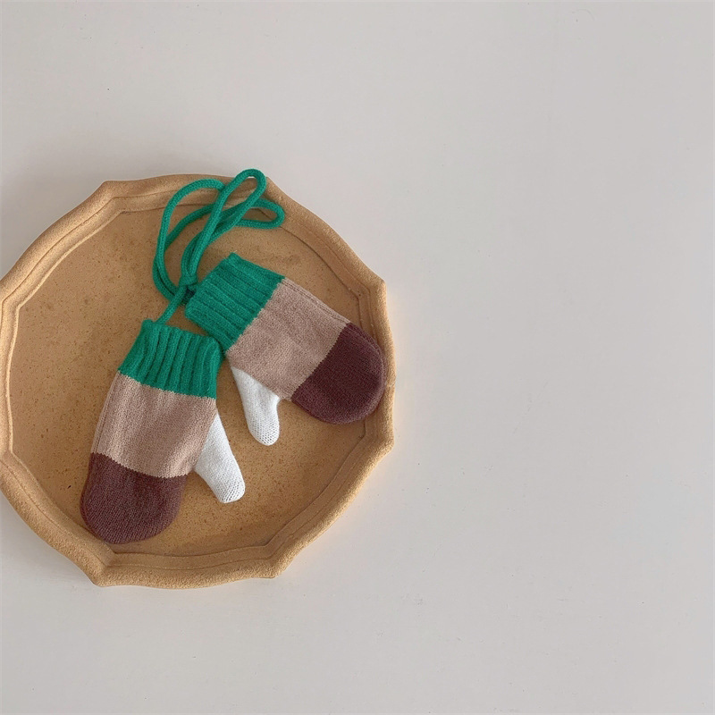 Qiunan 어린이 장갑 겨울 한국식 색상 맞추기 가방 손가락 소년 소녀 목 걸이 및 손가락 따뜻한 아기 장갑