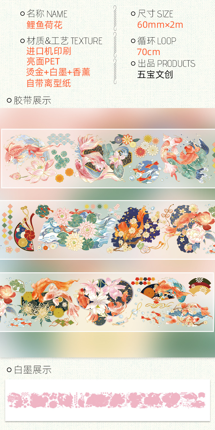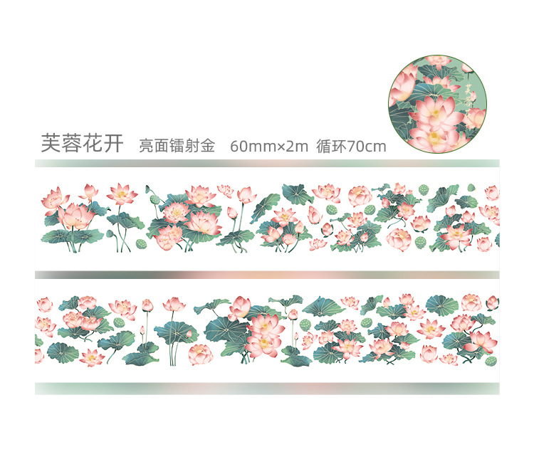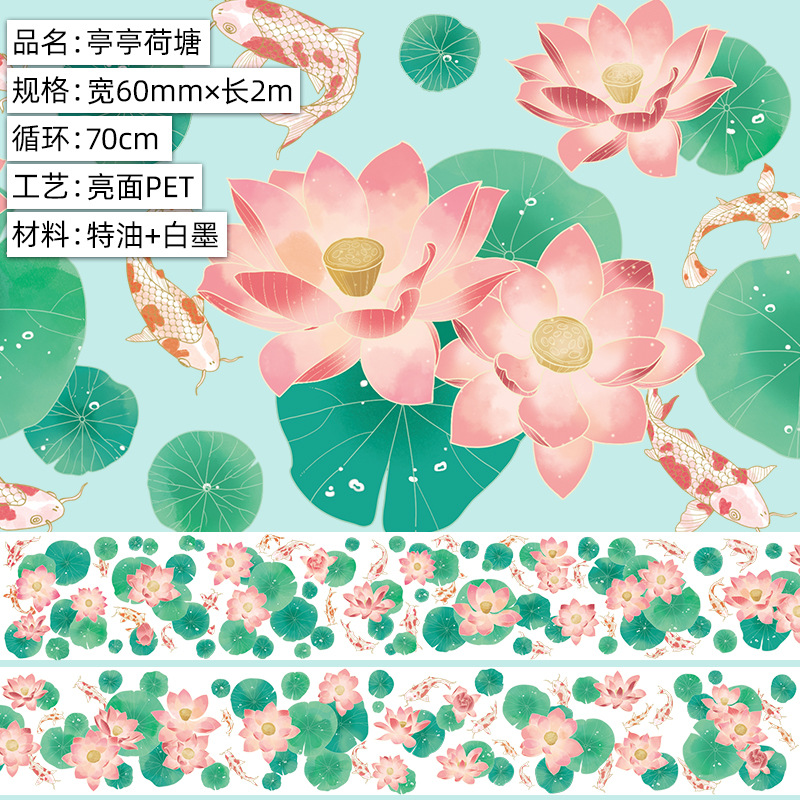 문화창의적인 PET 중국풍 수첩 테이프 도매 연꽃 풍경 수첩 재료 고대풍 DIY 전체 롤 수첩 테이프스토어 가기