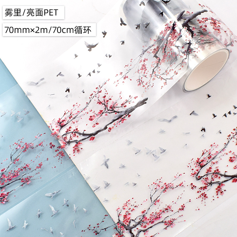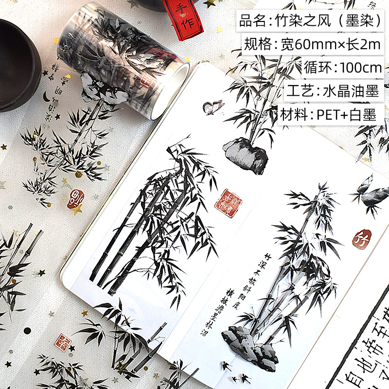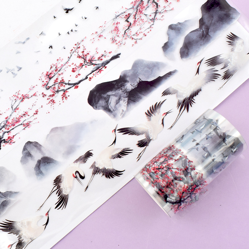 문화창의적인 PET 중국풍 수첩 테이프 도매 연꽃 풍경 수첩 재료 고대풍 DIY 전체 롤 수첩 테이프