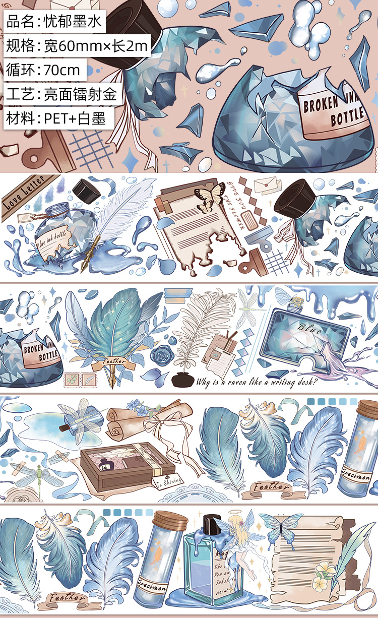 • 우울한 잉크. 밝은 표면 애완 동물. 레이저 골드 2m