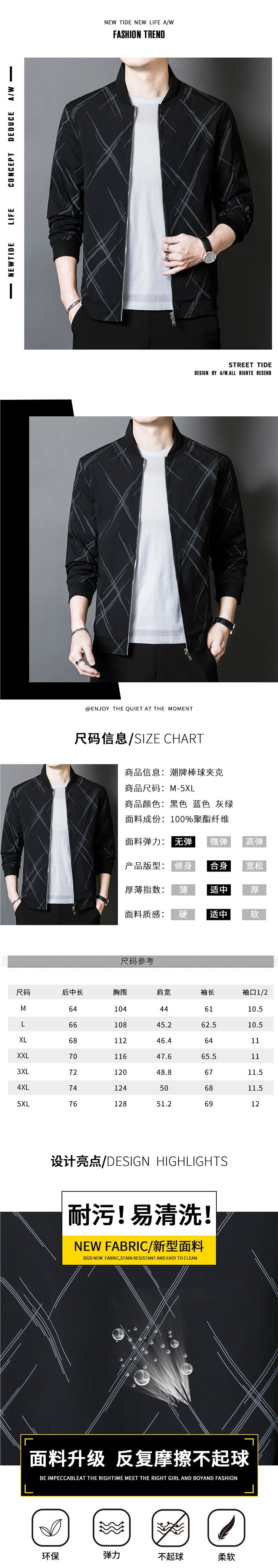 봄과 가을 새 재킷 남성용 얇은 모든 매치 재킷 남성용 야구 칼라 지퍼 캐주얼 유행 탑 8803