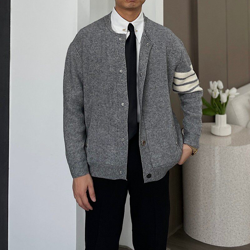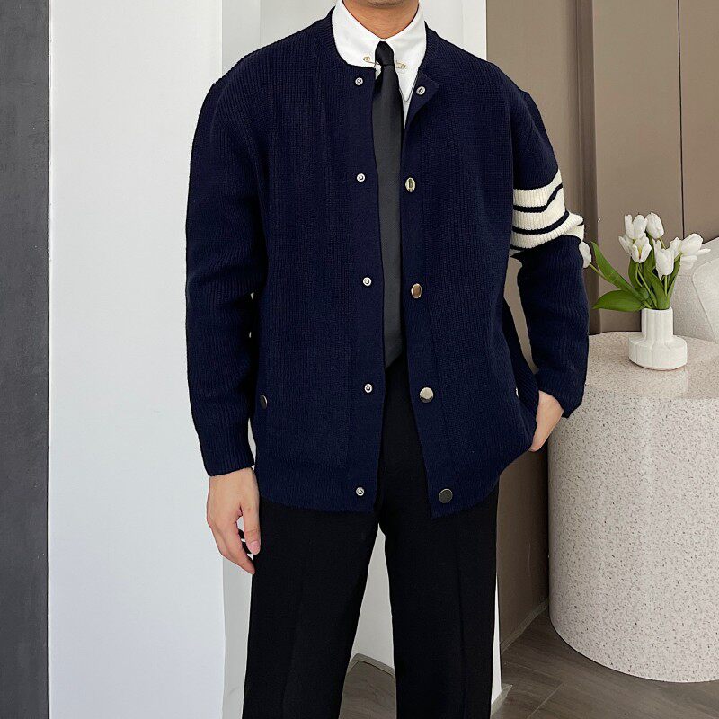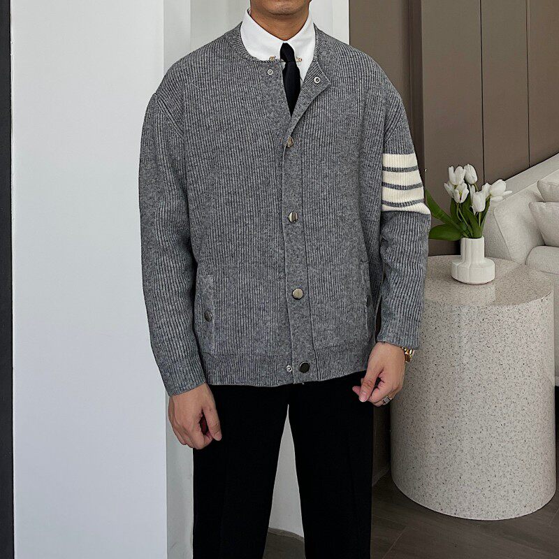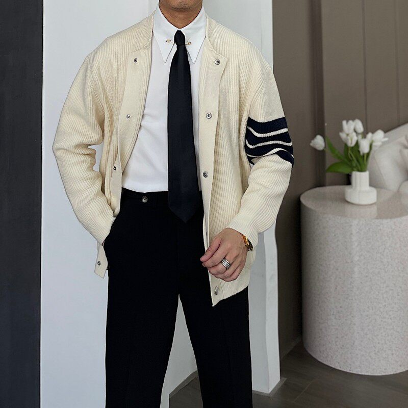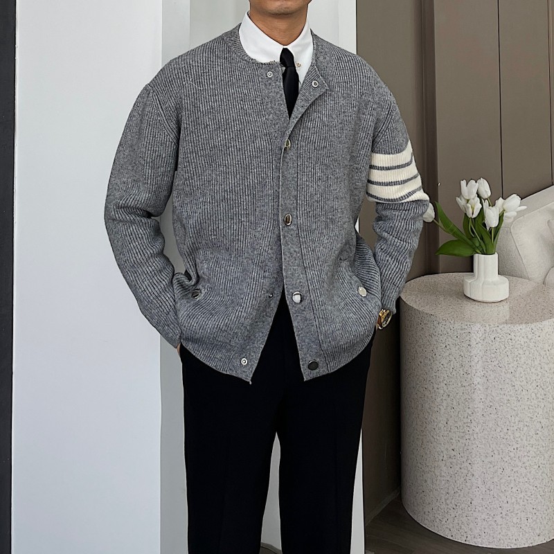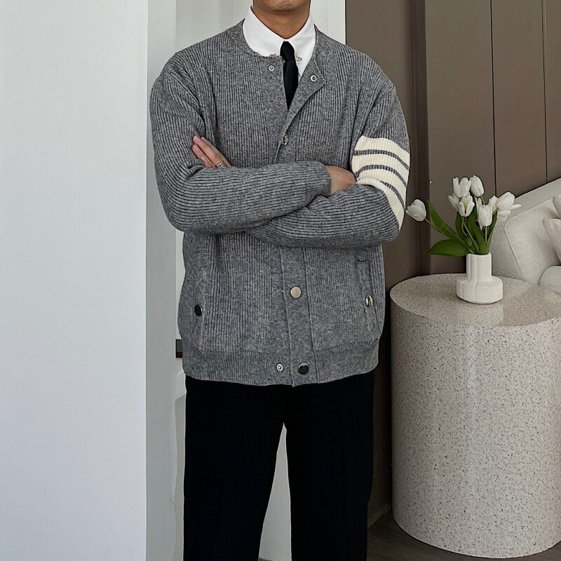 가을과 겨울 빈티지 캐주얼 스탠드 칼라 포 바 니트 스웨터 재킷 한국 스타일 모든 매치 가디건 스웨터 트렌디 남성과 여성스토어 가기