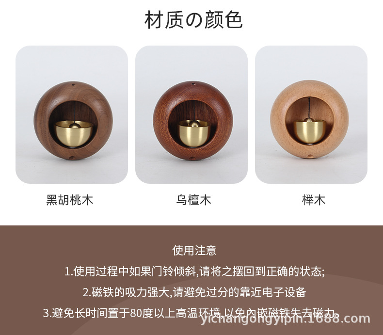 나무 도파민 바람 종 검은 호두 마그네틱 바람 종 검은 호두 작은 둥근 계란 도어 벨 흡입 가정 교수형스토어 가기
