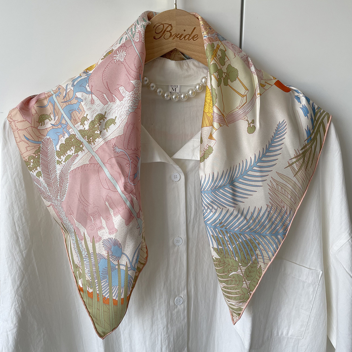 100% 실크 스카프 여성용 봄 여름 실크 스카프 다용도 사선 직조 70cm 정사각형 스카프 도매 2026 봄 여름 핫템