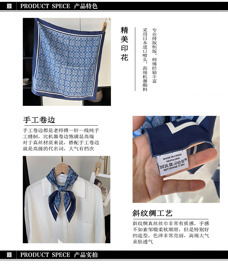 100% 실크 스카프 여성용 봄 여름 실크 스카프 다용도 사선 직조 70cm 정사각형 스카프 도매 2026 봄 여름 핫템스토어 가기
