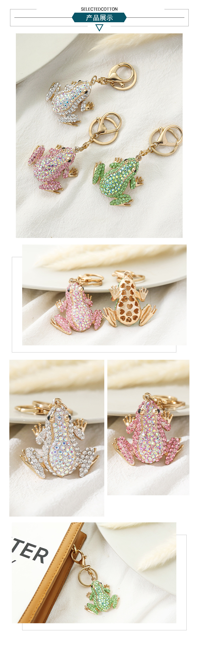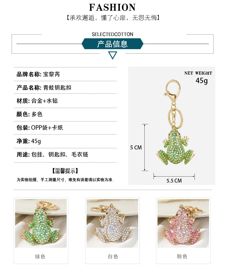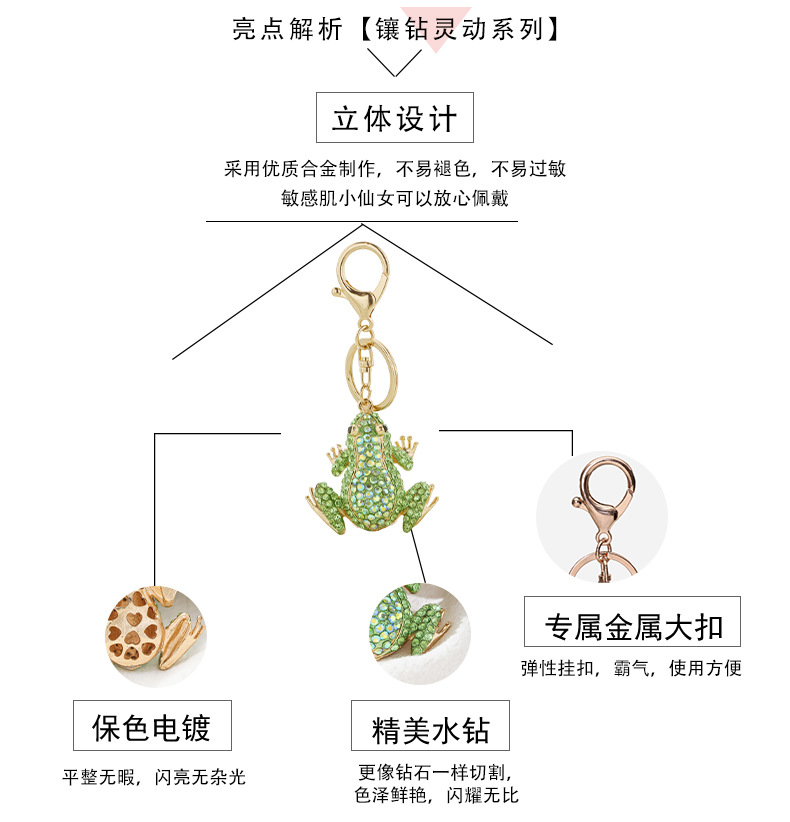 새로운 개구리 펜던트 유럽과 미국 다이아몬드 장식품 동물 귀여운 키 체인 도매 금속 창조적 인 작은 선물