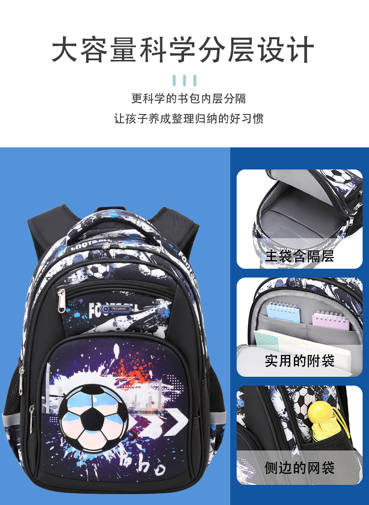 대외 무역 책가방 1-3학년 위장 무늬 축구 초등학생 대용량 척추 보호 어린이 백팩 다중 수납칸 배낭
